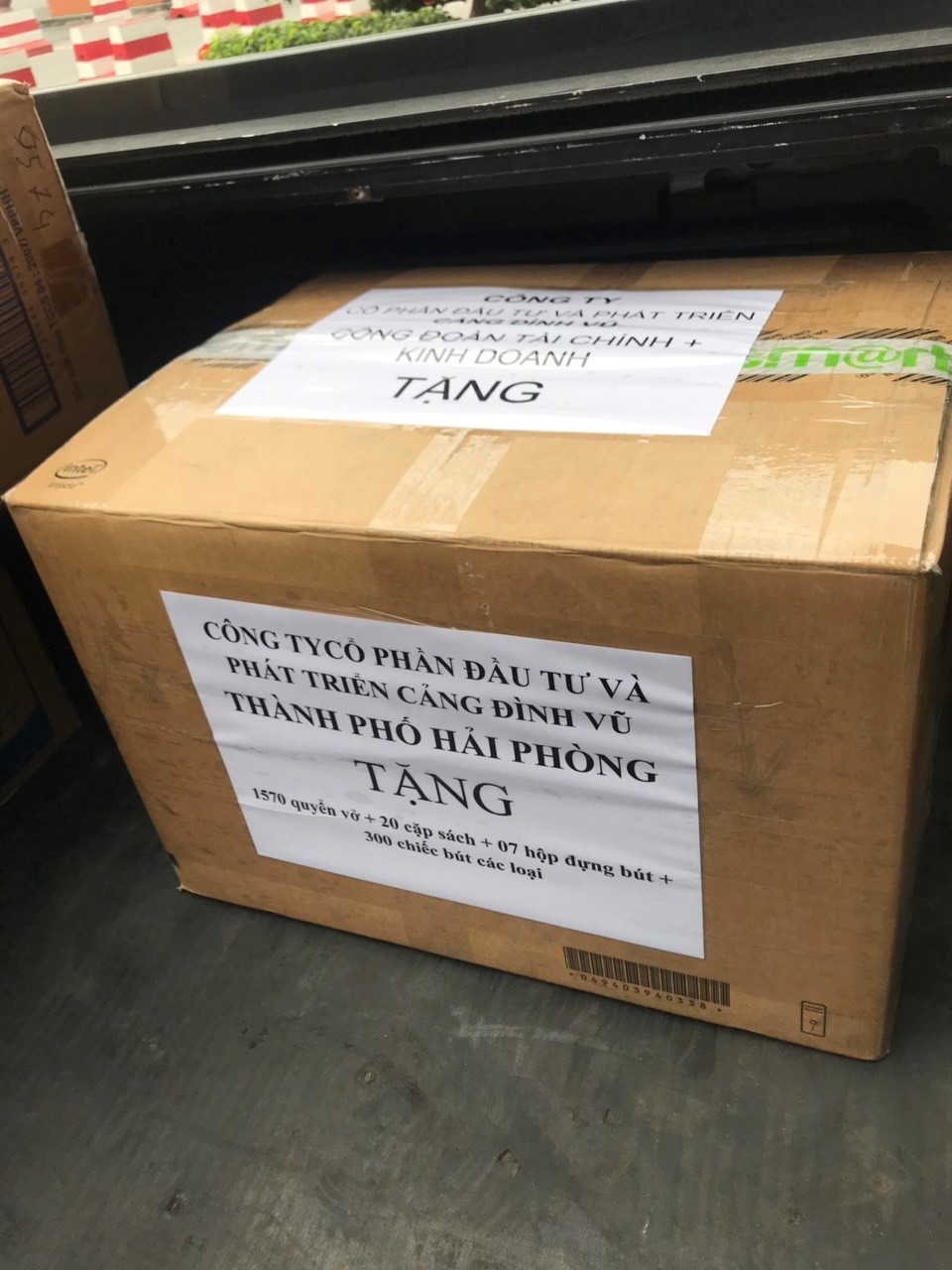 Sau hơn 1 tuần phát động, Cán bộ nhân viên và công đoàn các đơn vị phòng ban Cảng Đình Vũ đã tập hợp được tổng số 1.570 quyển vở ô li, 20 quyển sách, 30 hộp bút, 25 cặp sách, 38 hộp đựng bút cùng một số đồ dùng học tập thiết yếu. Ban chấp hàng Công đoàn Cảng Đình Vũ cùng CBCNV các phòng ban đã vận chuyển số đồ dùng học tập quyên góp được lên Cảng Hải Phòng để Ban tổ chức chuẩn bị cho chương trình (dự kiến diễn ra ngày 26-27-28/9/2019).