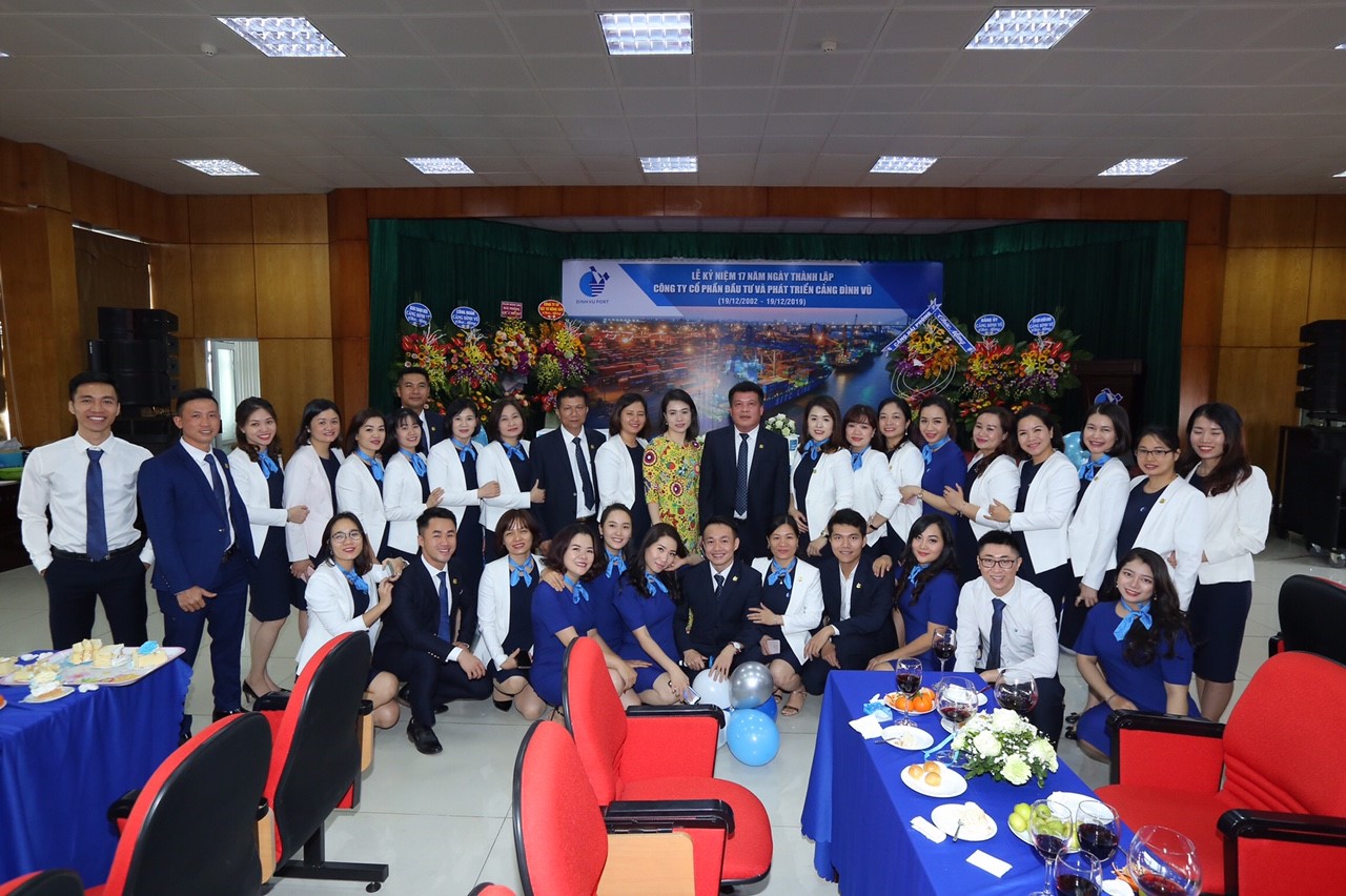 Sáng ngày 19/12/2019, Công ty Cổ phần Đầu tư và Phát triển Cảng Đình Vũ đã tổ chức Lễ kỷ niệm 17 năm ngày thành lập (19/12/2002-19/12/2019) tại Hội trường tầng 5 Văn phòng Công ty.