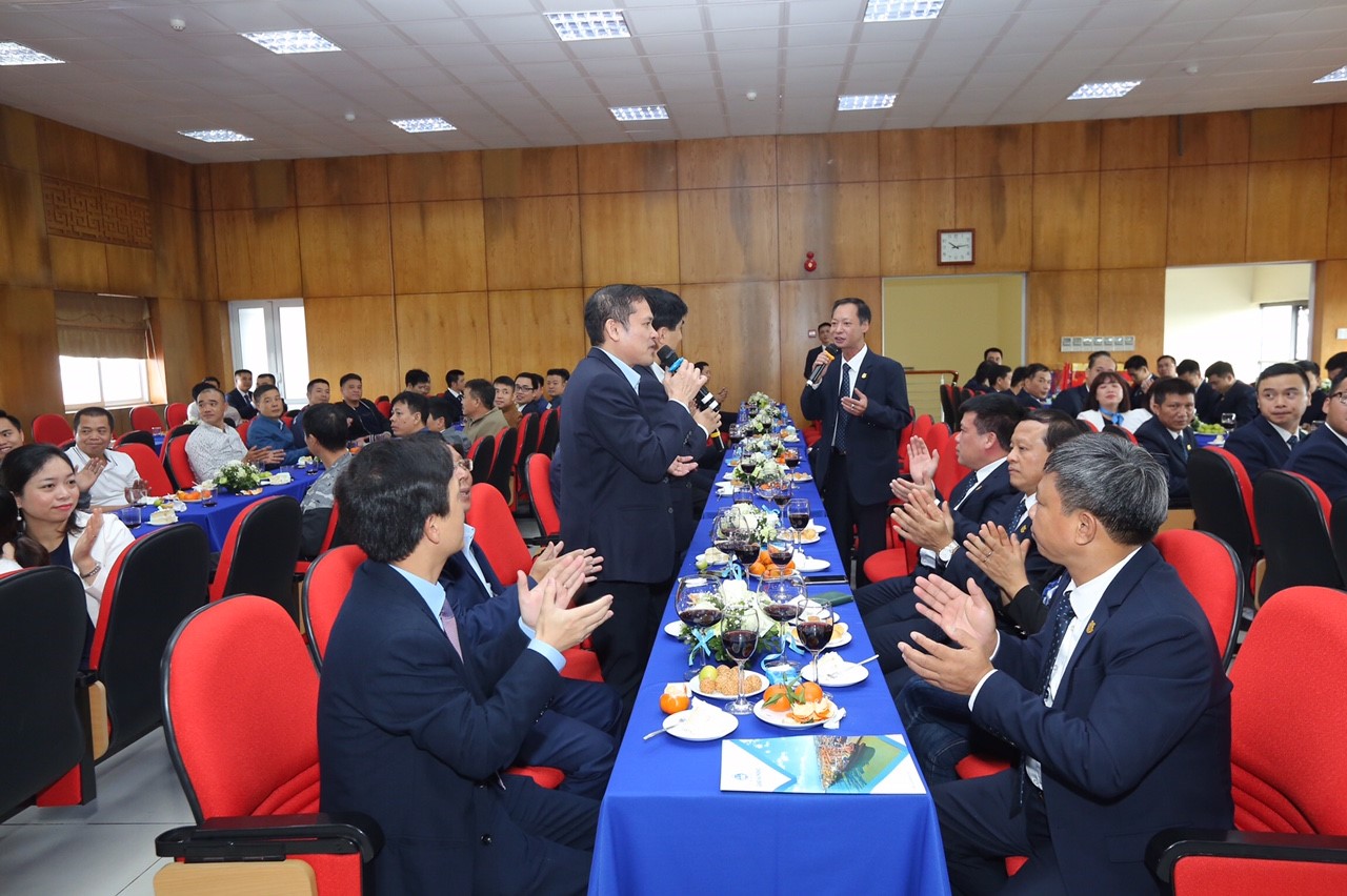 Sau phần lễ của chương trình, quý lãnh đạo và toàn thể đại biểu có mặt tại Hội trường cùng chứng kiến nghi thức cắt bánh sinh nhật, thưởng tiệc nhẹ và giao lưu, trò chuyện. Sự ngẫu hứng của các đồng chí lãnh đạo trong ca khúc “Bến cảng quê hương tôi” đã mang đến Hội trường không khí hân hoan, sôi nổi và niềm tin về sự phát triển của Cảng Đình Vũ cũng như Cảng Hải Phòng trong giai đoạn mới.