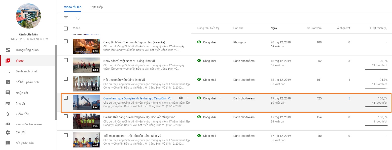 - Clip “Quá nhanh – Quá đơn giản khi lấy hàng ở Cảng Đình Vũ” của Đội Giao nhận kho hàng được 425 lượt xem & 46 lượt yêu thích.