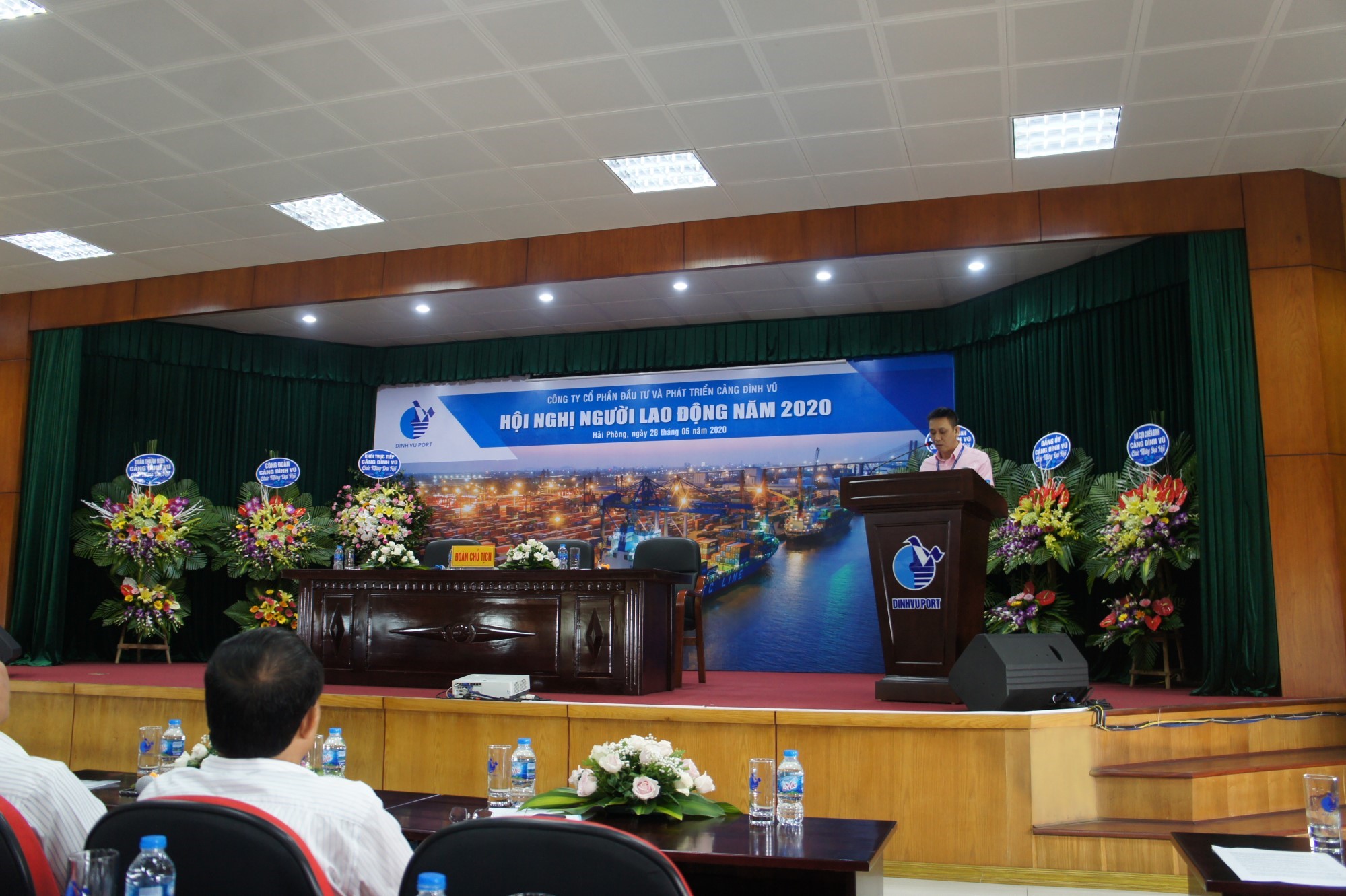 Sáng ngày 28 tháng 5 năm 2020, Công ty Cổ phần Đầu tư và Phát triển Cảng Đình Vũ đã tổ chức Hội nghị người lao động năm 2020 tại Hội trường tầng 5 Công ty, phường Đông Hải 2, quận Hải An, thành phố Hải Phòng. Tham dự Hội nghị có tổng số 128 đại biểu đại diện cho toàn thể CBCNV các đơn vị phòng, ban, tổ, đội trong Công ty.