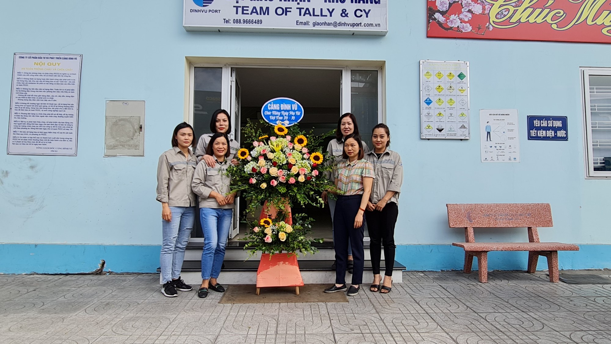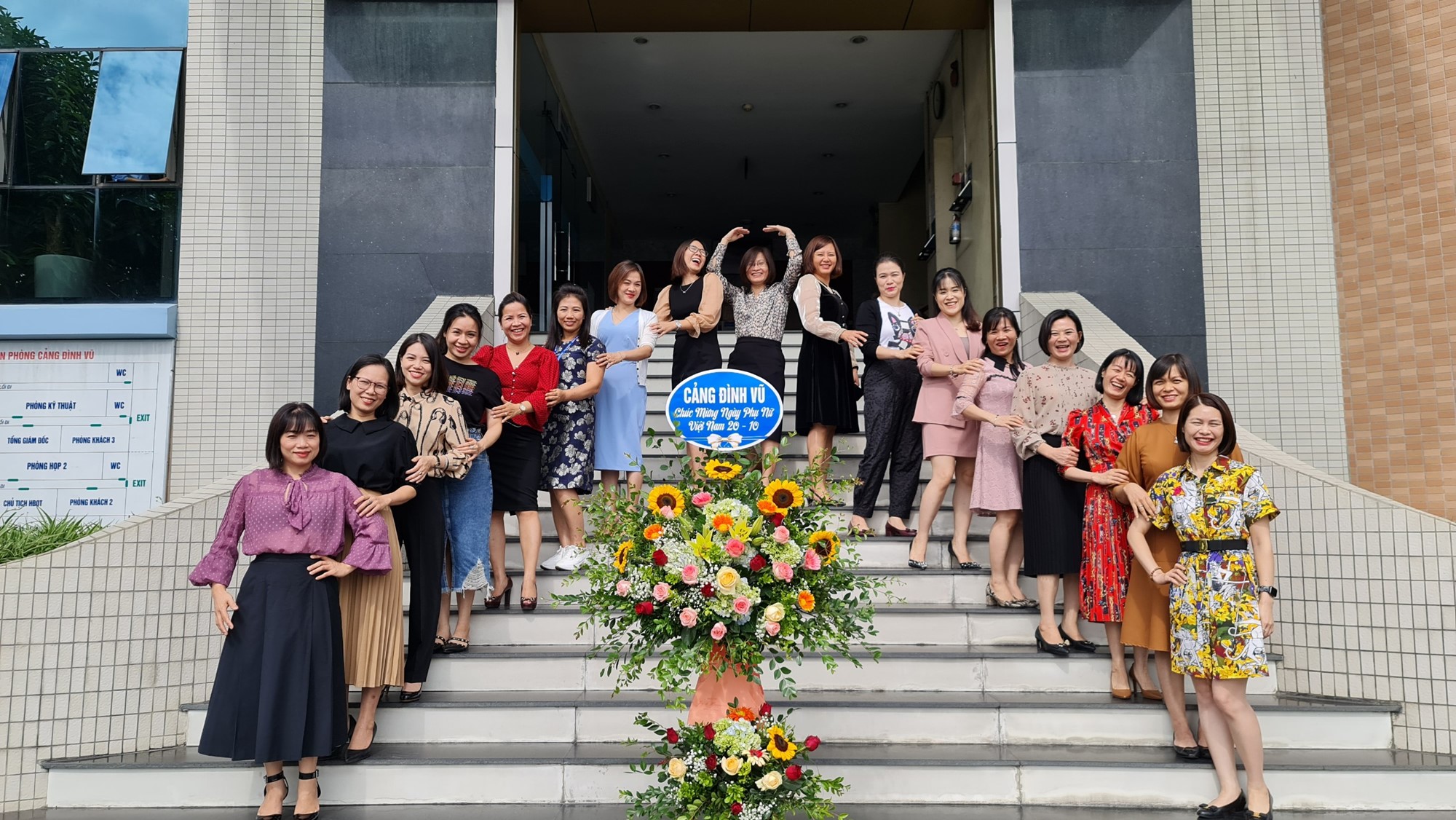 Dịp 20/10 năm nay do tập trung hoàn thành các mục tiêu sản xuất kinh doanh quý 4 và cả năm 2020 nên Cảng Đình Vũ không tổ chức hoạt động bề nổi như thường niên. Thay vào đó, Ban lãnh đạo Công ty đã quyết định trao tặng những lẵng hoa tươi thắm tại nơi làm việc cùng những phần quà tri ân và những lời chúc mừng tốt đẹp nhất tới đội ngũ nữ cán bộ nhân viên Cảng Đình Vũ.