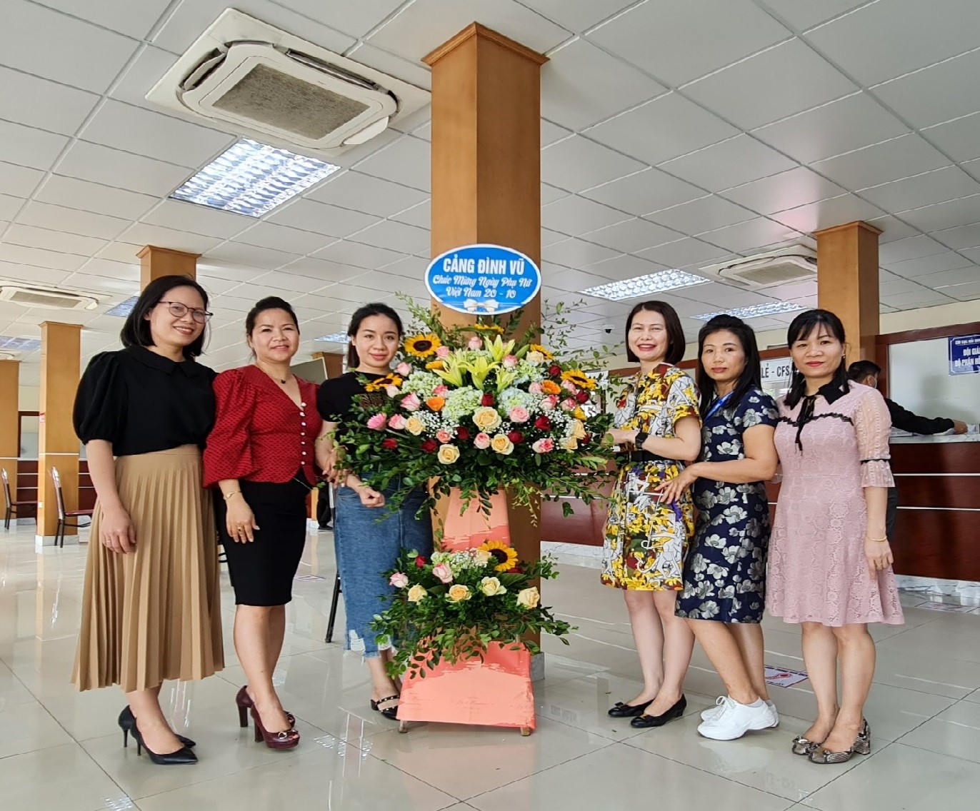 Kỷ niệm và chúc mừng 90 năm ngày thành lập Hội Liên hiệp Phụ nữ Việt Nam (20/10-1930-20/10/2020), đại diện Ban lãnh đạo, Ban chấp hành Công đoàn, Ban chấp hành Đoàn thanh niên Cảng Đình Vũ đã tổ chức tặng hoa cho Ban nữ công cùng đại diện các đơn vị tập thể có nữ Cán bộ công nhân lao động trong Công ty vào sáng ngày 20/10/2020.