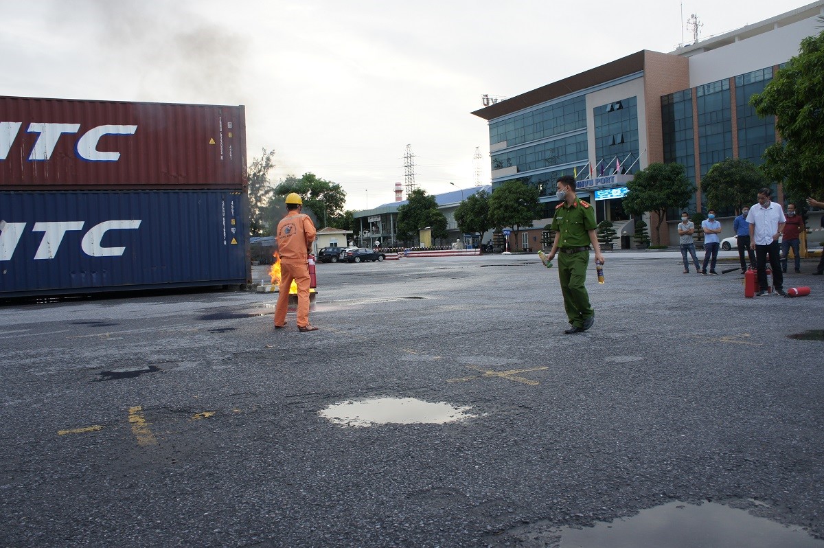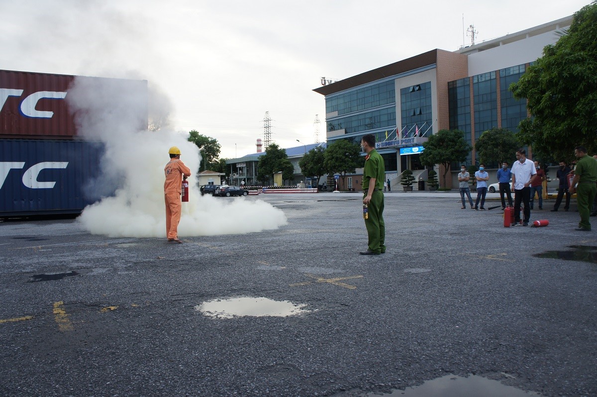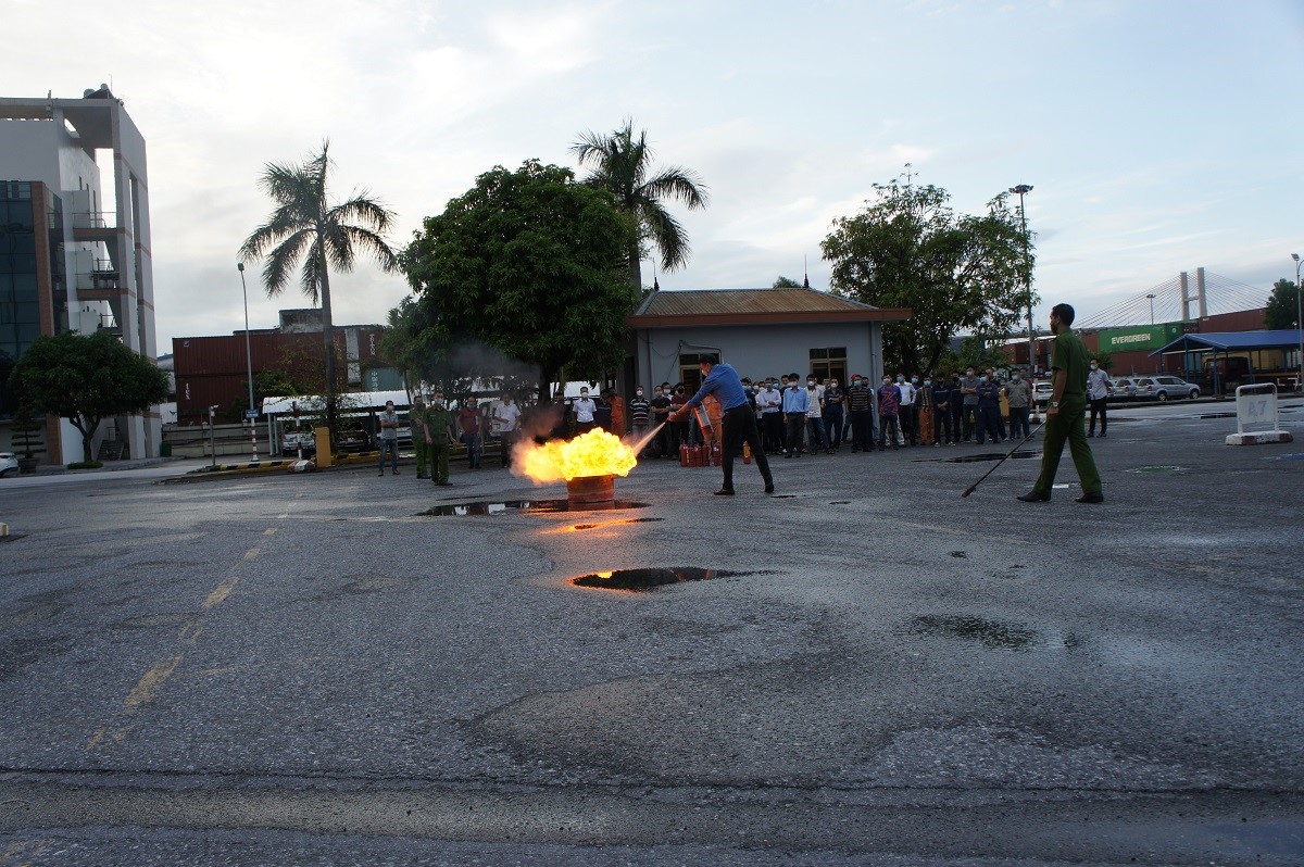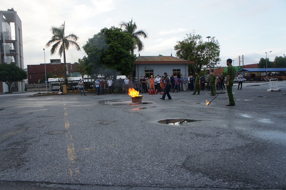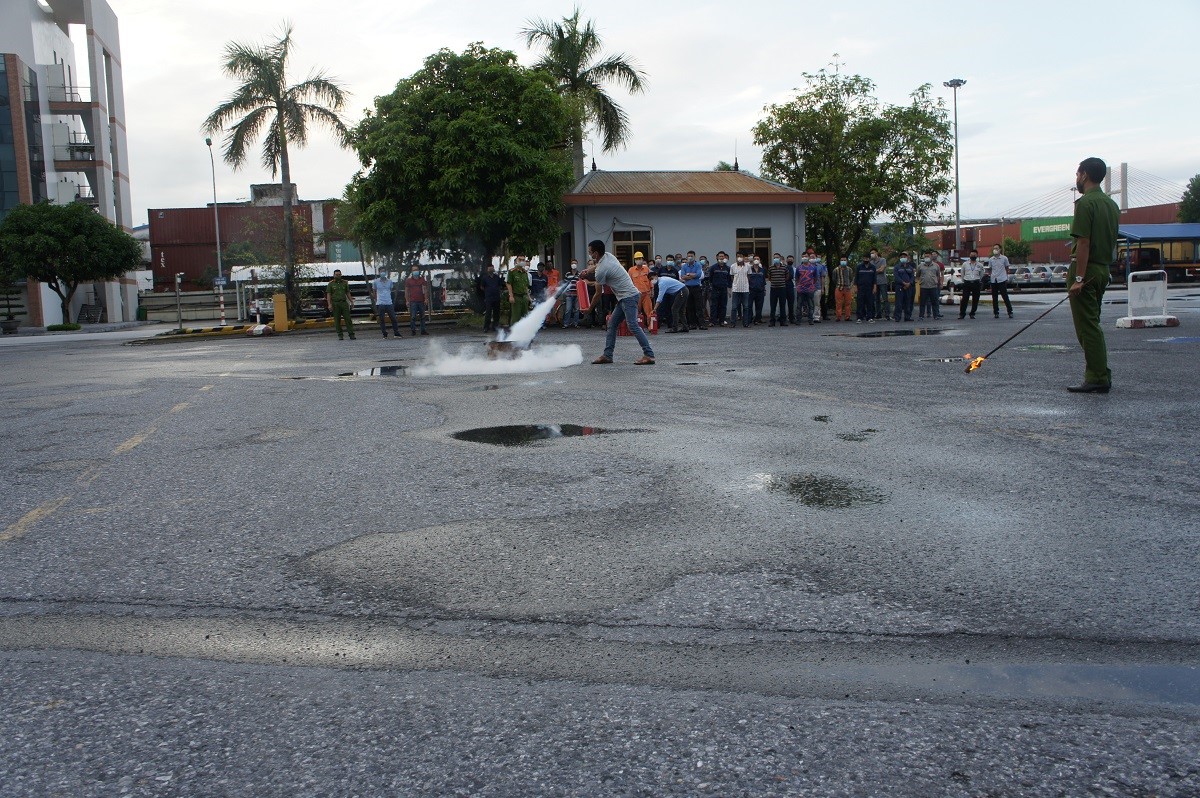 Ban Tổng giám đốc Công ty cùng 64 thành viên trong danh sách đội PCCC cơ sở đã tham gia khóa huấn luyện gồm 2 nội dung lý thuyết và thực hành. Các đồng chí thuộc Đội Cảnh sát PCCC và CNCH trên sông đã truyền đạt những kiến thức thực tế và bổ ích để trang bị cho đội PCCC cơ sở của Cảng Đình Vũ. Ngay sau phần chia sẻ lý thuyết, các thành viên tham gia chương trình huấn luyện đã được thực hành các thao tác sử dụng bình xịt cứu hỏa để dập tắt đám cháy giả lập tại khu vực bãi sau nhà cân Cảng Đình Vũ.