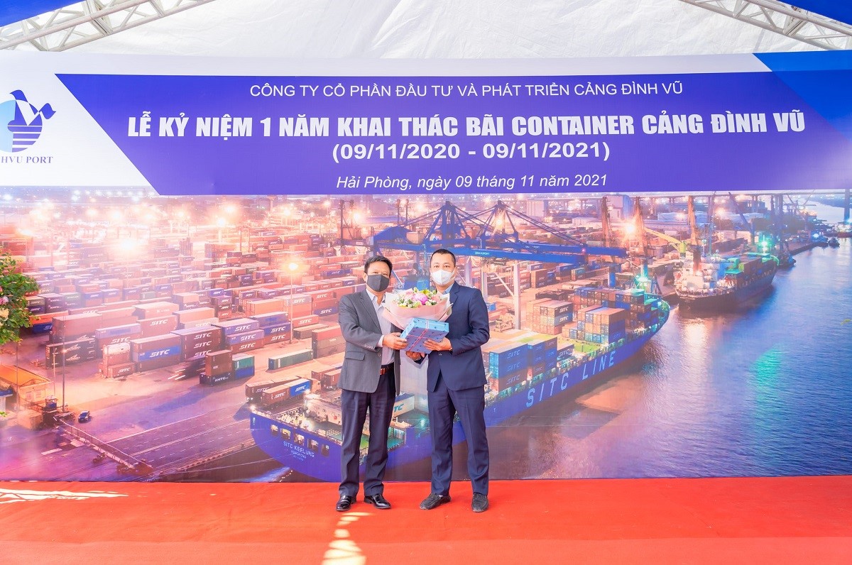 Chương trình lễ kỷ niệm 1 năm khai thác bãi container Cảng Đình Vũ được tổ chức ngắn gọn nhưng vẫn đảm bảo tính trang trọng và chuyên nghiệp thể hiện sự quan tâm rất lớn từ Ban điều hành, tập thể lãnh đạo Công ty dành cho đội ngũ công tác tại bãi. Chủ tịch Hội đồng quản trị Vũ Tuấn Dương đã trao hoa và quà cho tập thể phụ trách điều hành và nhân viên bãi container Cảng Đình Vũ. Không khí tiệc giao lưu vui vẻ trong tiết trời lạnh nhẹ đầu đông kết nối mọi người tham dự lại gần nhau hơn, đoàn kết hơn để cùng quyết tâm hoàn thành các chỉ tiêu quý 4 và cả năm 2021 cũng như giữ vững thành tích của Cảng Đình Vũ trong những năm sắp tới.
