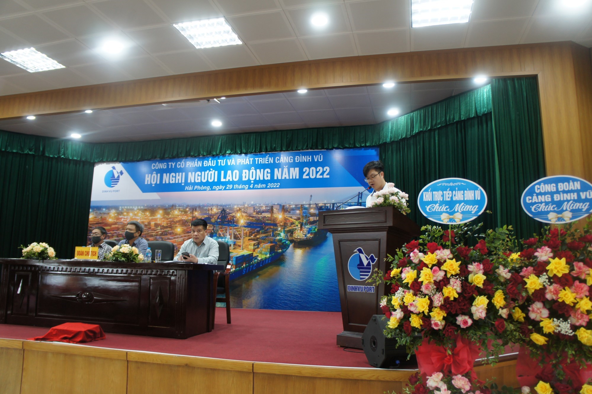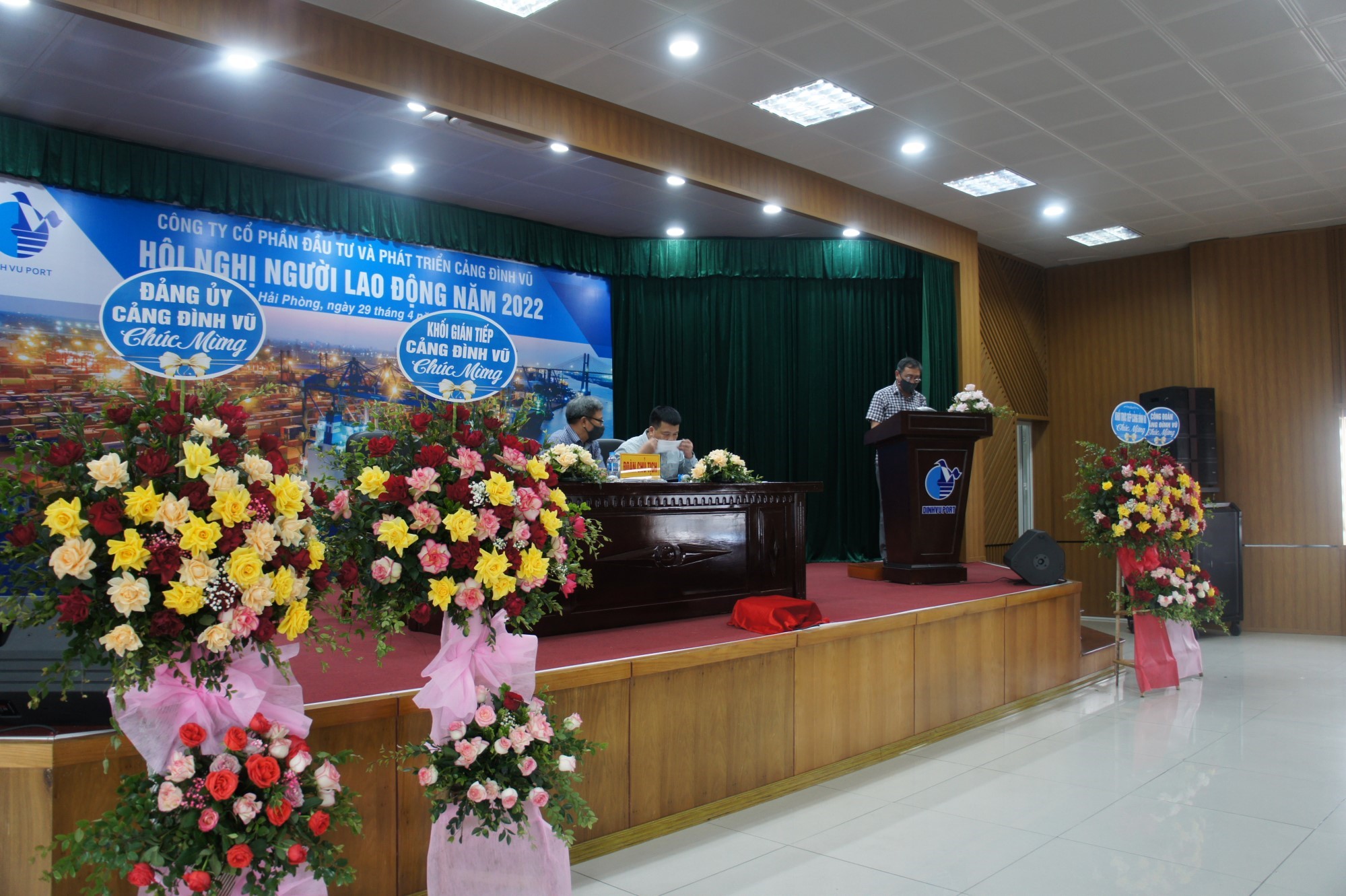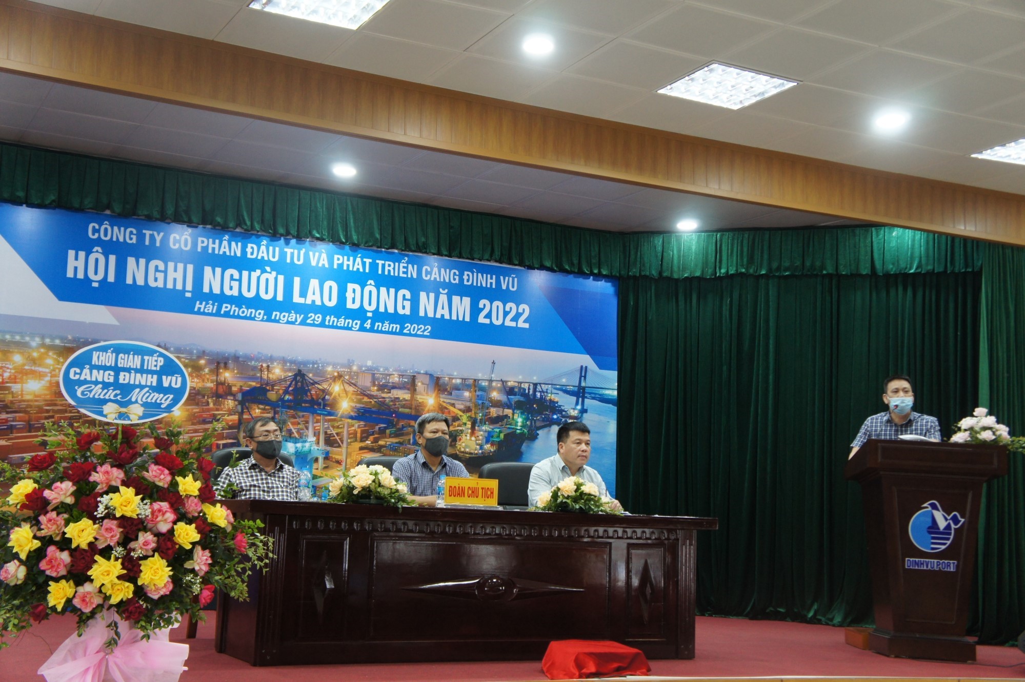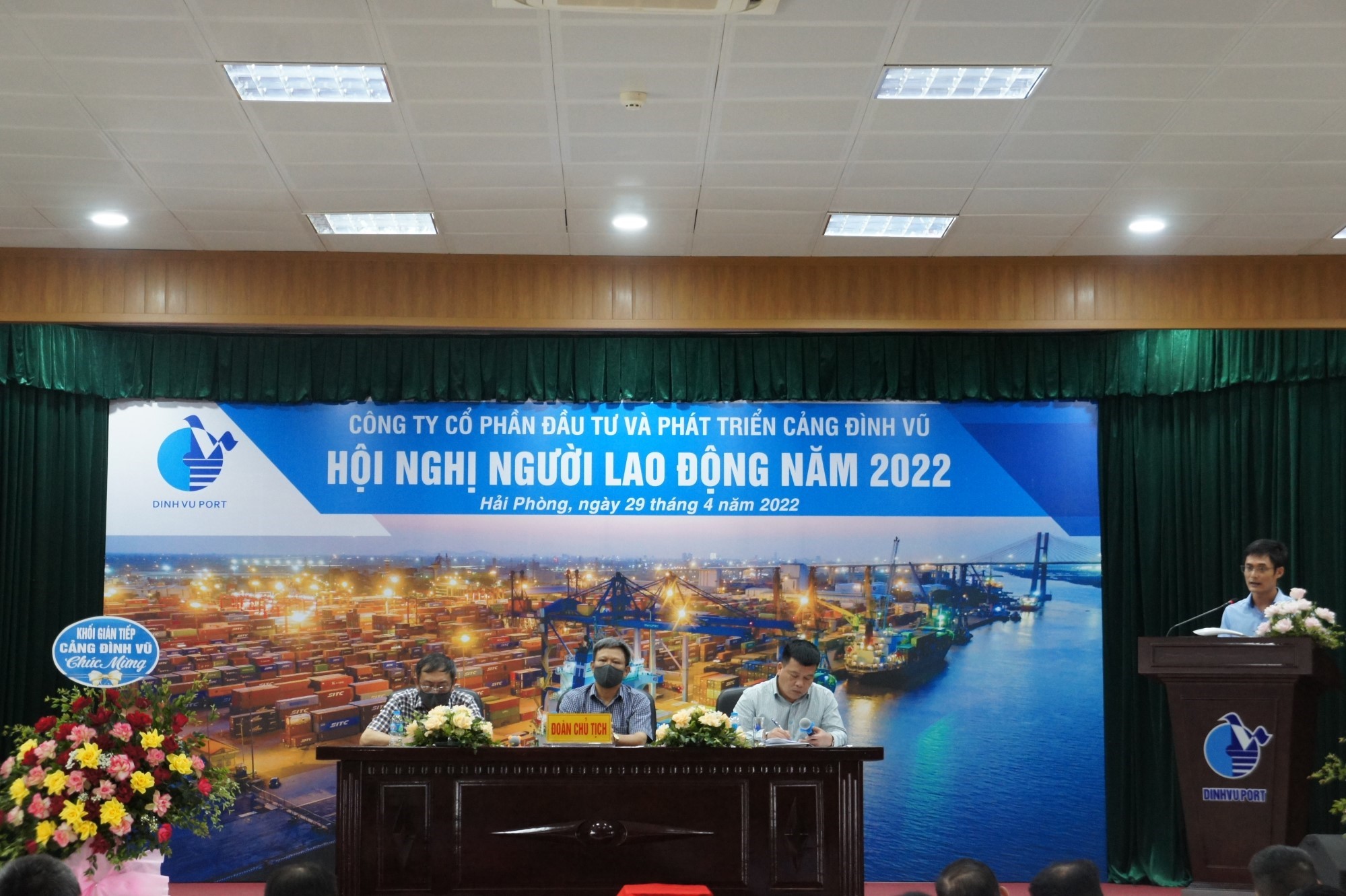 Sáng ngày 29/4/2022, Công ty Cổ phần Đầu tư và Phát triển Cảng Đình Vũ đã tổ chức Hội nghị người lao động năm 2022 tại Hội trường tầng 5 Công ty. Tham dự Hội nghị có tổng số 129 đại biểu đại diện cho tập thể lãnh đạo và CBCNV các đơn vị phòng, ban, tổ, đội trong Công ty.
