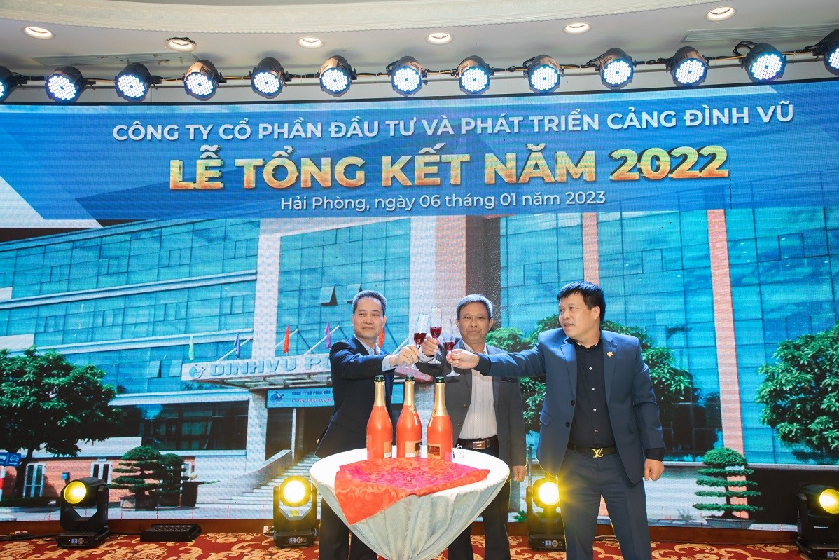 Tối ngày 06/01/2023, Công ty Cổ phần Đầu tư và Phát triển Cảng Đình Vũ đã tổ chức Lễ tổng kết và liên hoan tất niên năm 2022 tại Diamond Palace - Trung tâm tổ chức sự kiện Hải Đăng Plaza. Tham dự chương trình có sự hiện diện của các thành viên Hội đồng quản trị, Ban kiểm soát, Ban điều hành Công ty, lãnh đạo các phòng ban đơn vị cùng hơn 200 cán bộ nhân viên tiêu biểu.