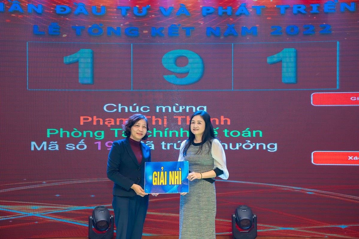 Nội dung Bốc thăm may mắn năm 2022 có tổng số 189 giải thưởng (100 giải may mắn, 55 giải khuyến khích, 25 giải Ba, 06 giải Nhì, 02 giải Nhất và 01 giải Đặc biệt). Với kết quả đa số các giải thưởng lớn ngẫu nhiên thuộc về khối sản xuất trực tiếp thể hiện sự minh bạch, khách quan của phần mềm quay số trúng thưởng do Tổ công nghệ thông tin Công ty thiết kế. Giải Đặc biệt là 01 chiếc tivi LG 4K 65 inch đã thuộc về anh Phạm Minh Sơn với mã số nhân viên 558 – thuộc Đội Giao nhận kho hàng.