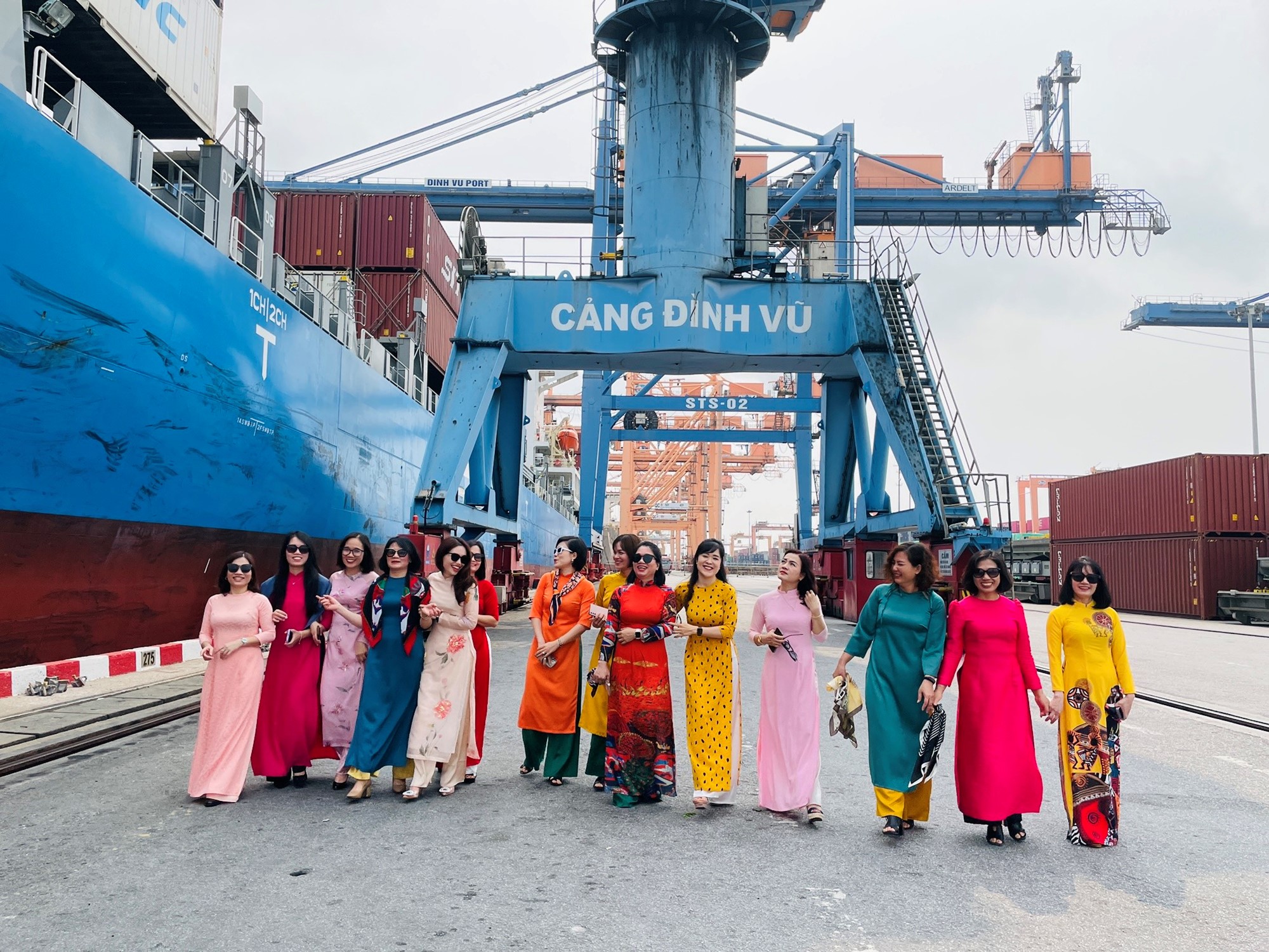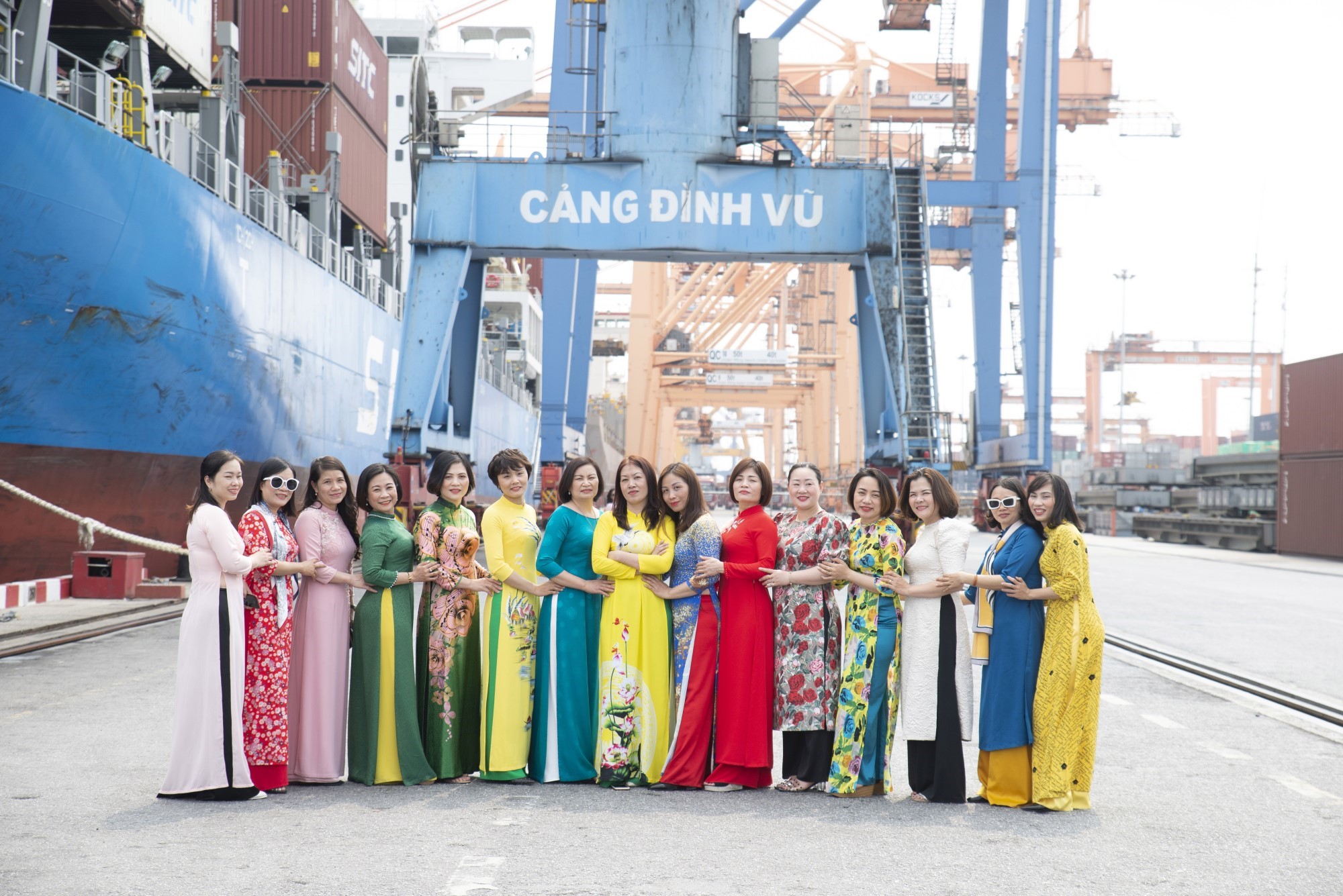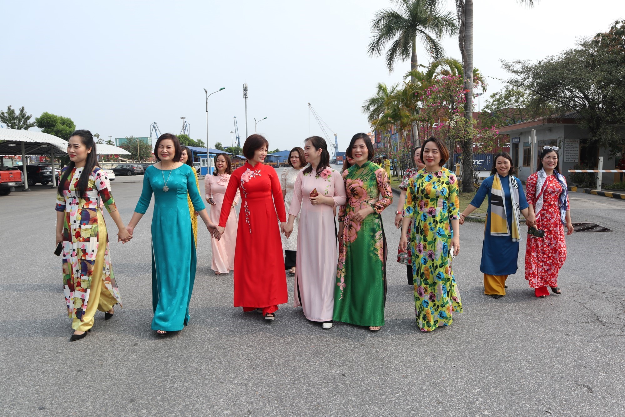 Trong những tà áo dài truyền thống Việt Nam, tập thể nữ CBCNV Cảng Đình Vũ các đơn vị thể hiện sự duyên dáng, vui tươi, phấn khởi trong ngày đặc biệt dành cho phụ nữ. Qua đó cũng thể hiện tinh thần giao lưu, đoàn kết giữa các đơn vị phòng ban trong toàn Công ty khi các chị em nắm tay trao nhau những nụ cười và cùng tạo những hình ảnh đẹp của phụ nữ Cảng Đình Vũ. Một số hình ảnh đẹp ghi lại trong ngày phát động mặc áo dài đã được lựa chọn gửi tham dự cuộc thi ảnh “Phụ nữ Hàng hải – Duyên dáng, chuyên nghiệp” năm 2023 do Công đoàn Tổng công ty Hàng hải Việt Nam phát động.