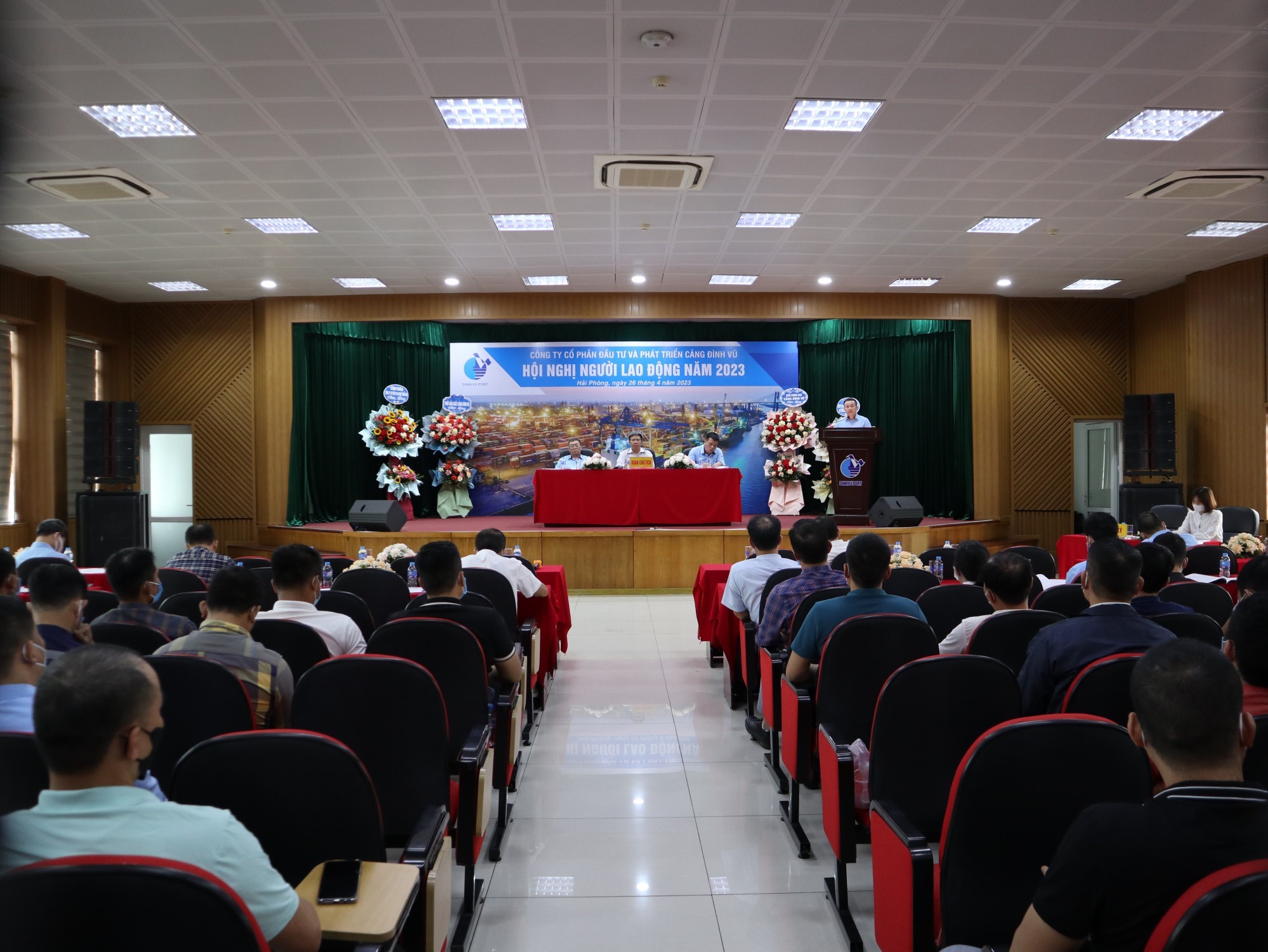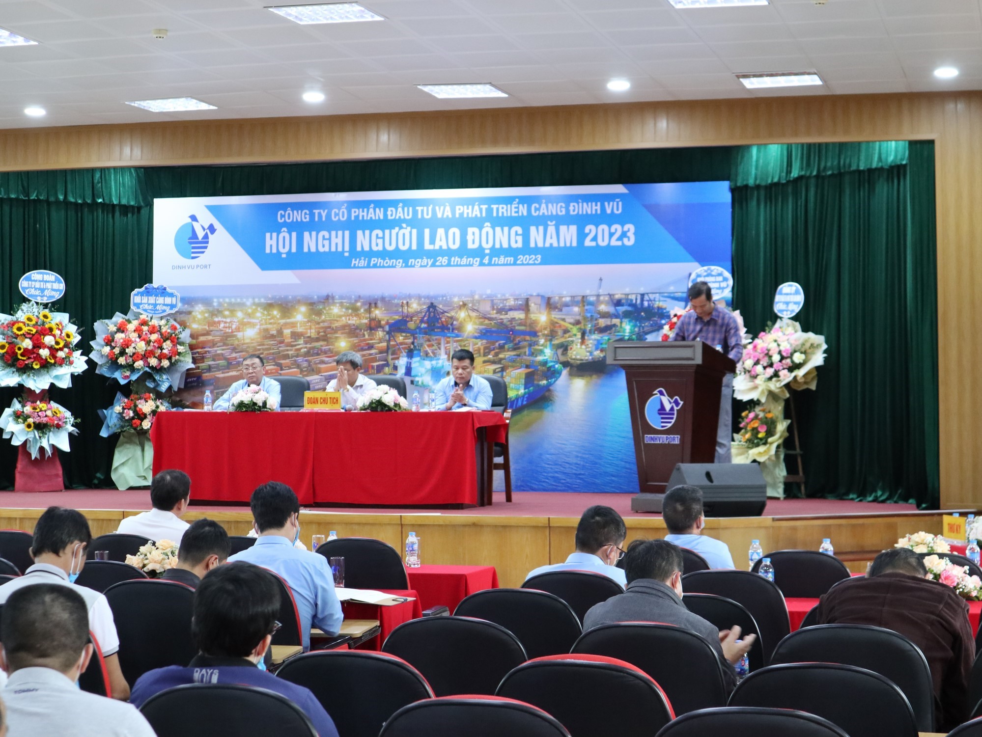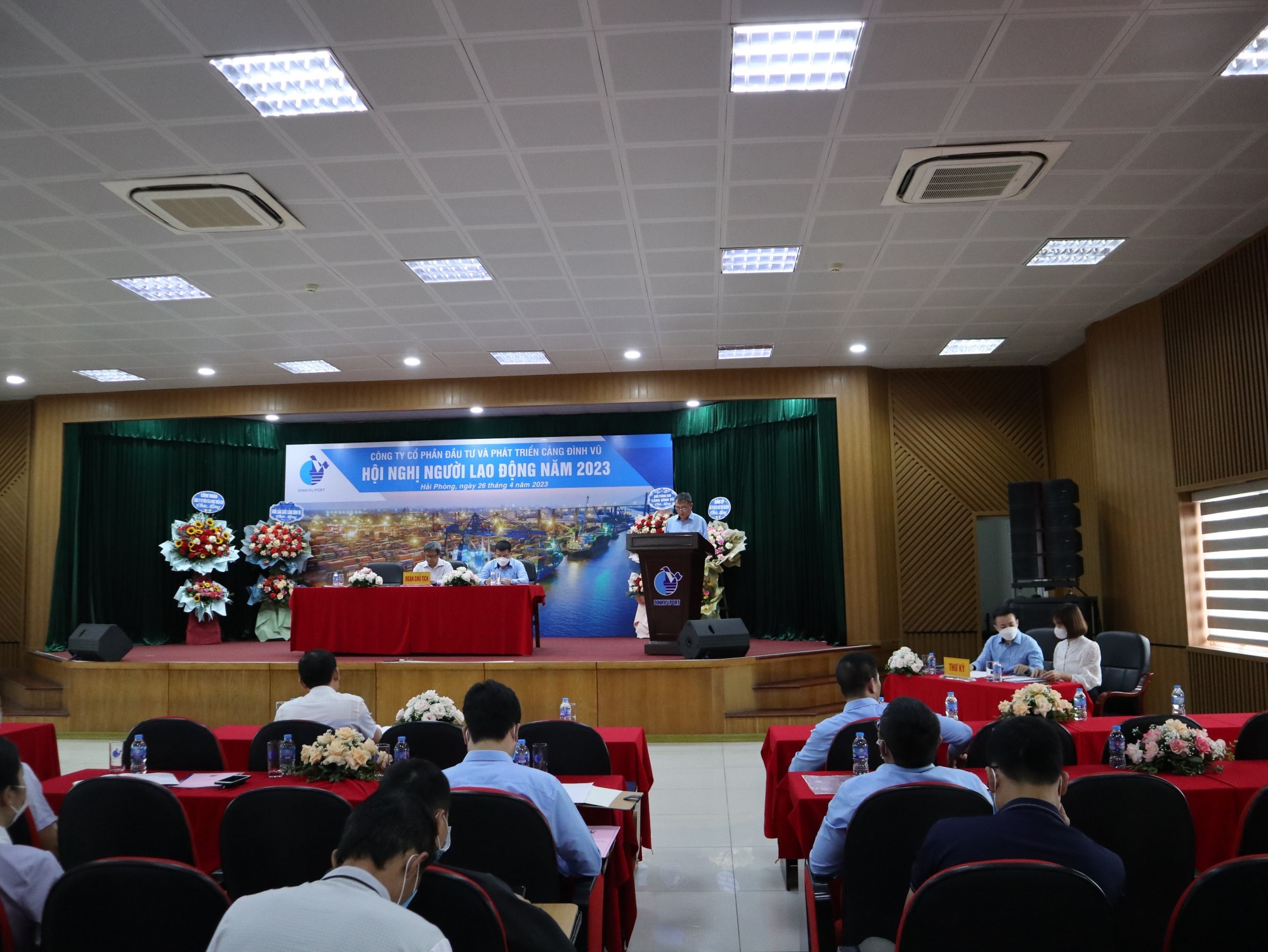 Sáng ngày 26/4/2023, Công ty Cổ phần Đầu tư và Phát triển Cảng Đình Vũ đã tổ chức Hội nghị người lao động năm 2023 tại Hội trường tầng 5 Công ty. Tham dự Hội nghị có tổng số 129 đại biểu đại diện cho tập thể lãnh đạo và CBCNV các đơn vị phòng, ban, tổ, đội trong Công ty.