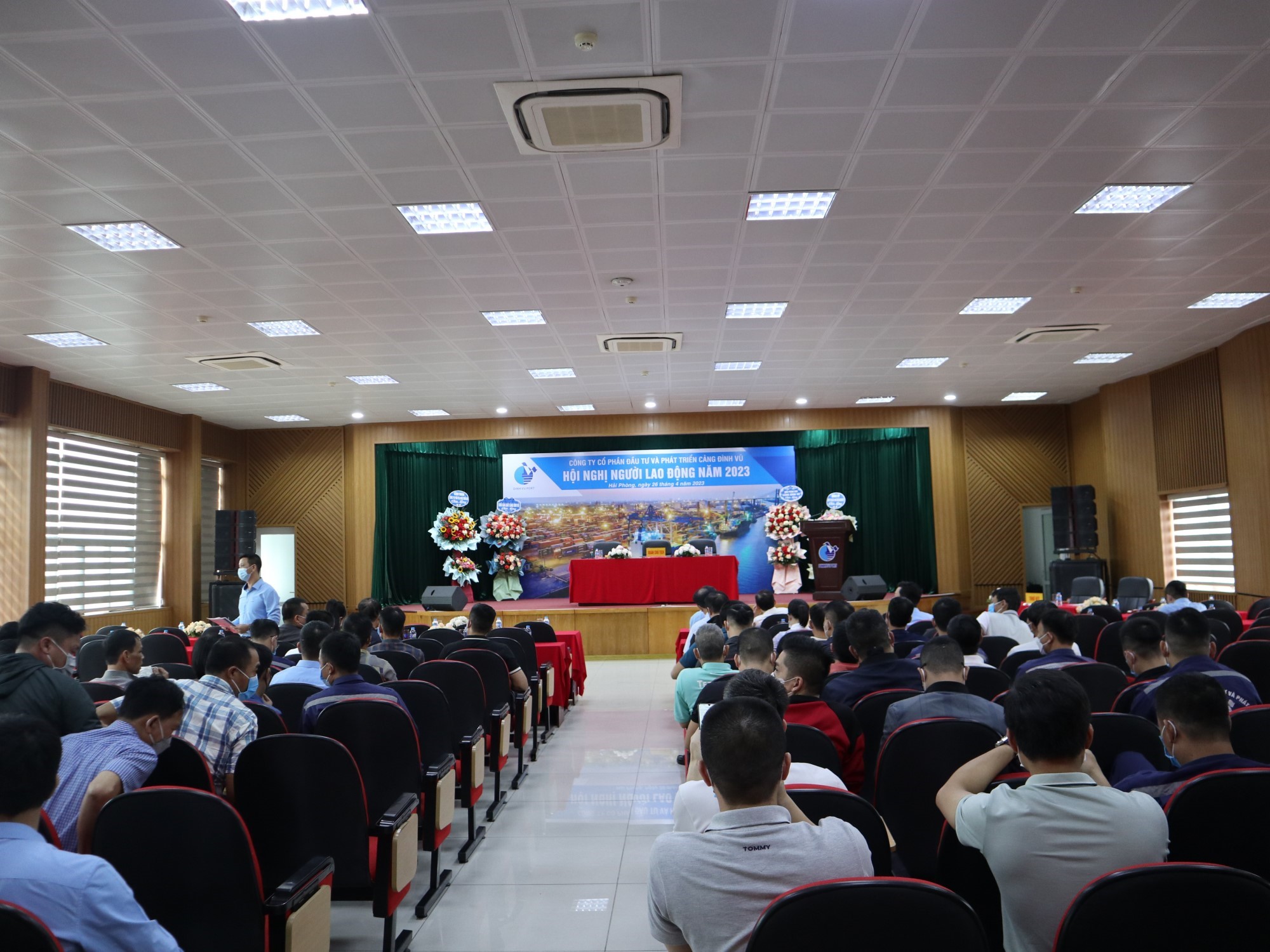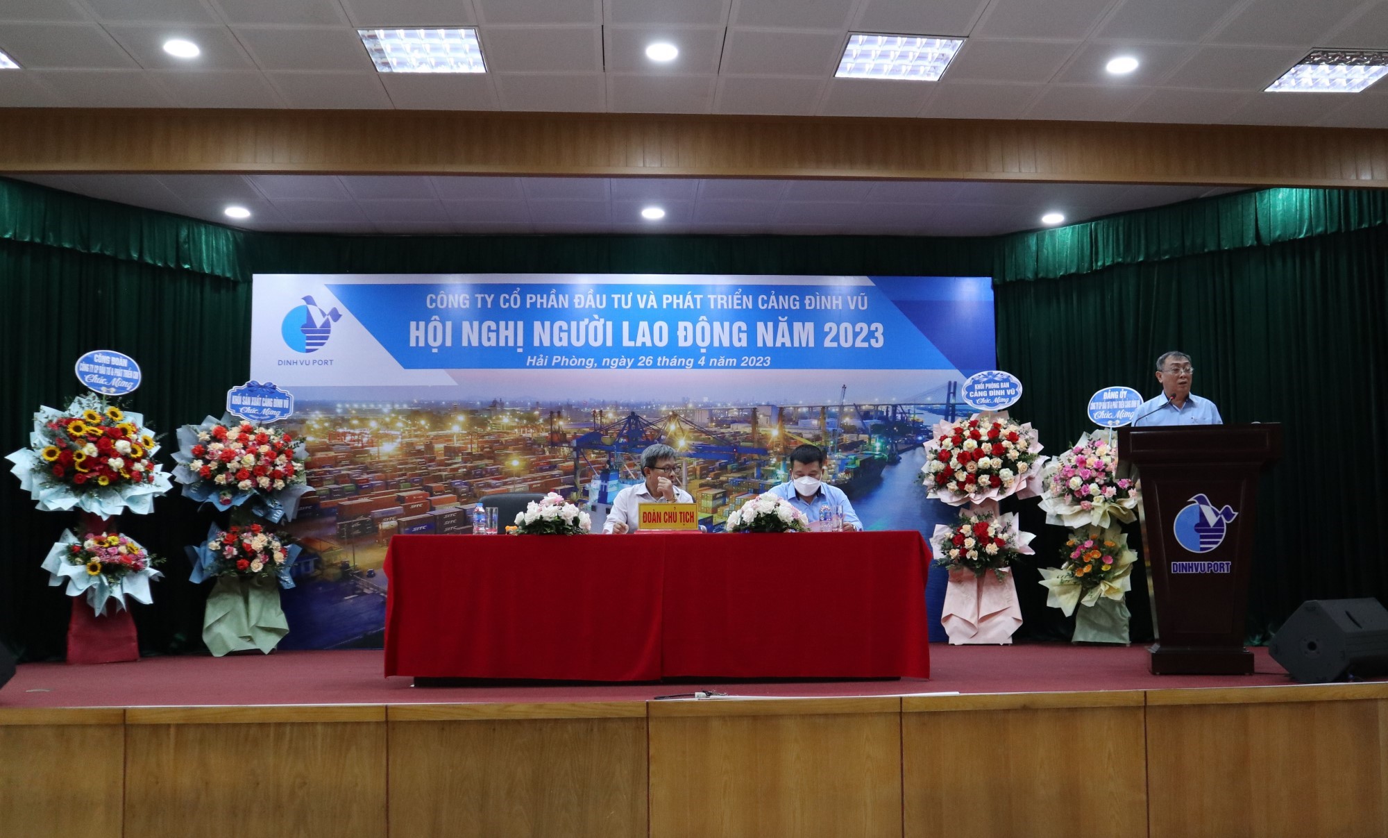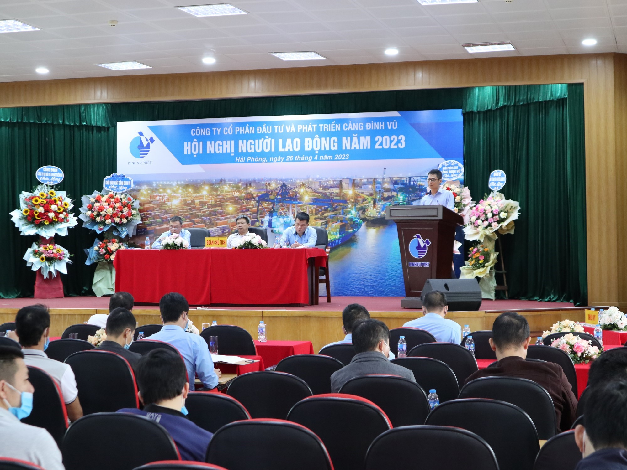 Sáng ngày 26/4/2023, Công ty Cổ phần Đầu tư và Phát triển Cảng Đình Vũ đã tổ chức Hội nghị người lao động năm 2023 tại Hội trường tầng 5 Công ty. Tham dự Hội nghị có tổng số 129 đại biểu đại diện cho tập thể lãnh đạo và CBCNV các đơn vị phòng, ban, tổ, đội trong Công ty.