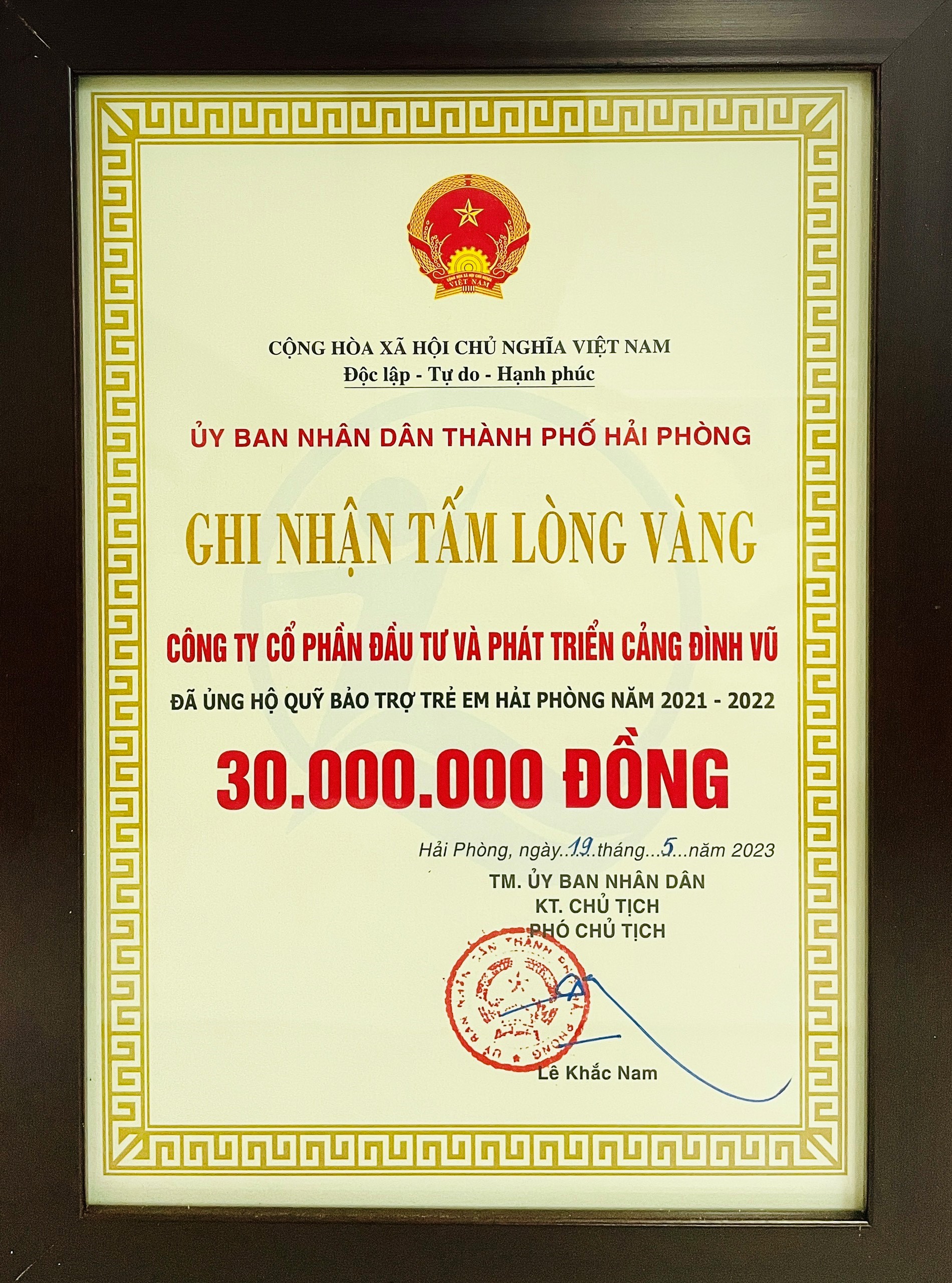 Tại chương trình, Cảng Đình Vũ cùng 17 tập thể đã được Quỹ Bảo trợ trẻ em thành phố trao ghi nhận “Tấm lòng vàng” cho thành tích tiêu biểu xây dựng Quỹ Bảo trợ trẻ em thành phố năm 2021-2022.