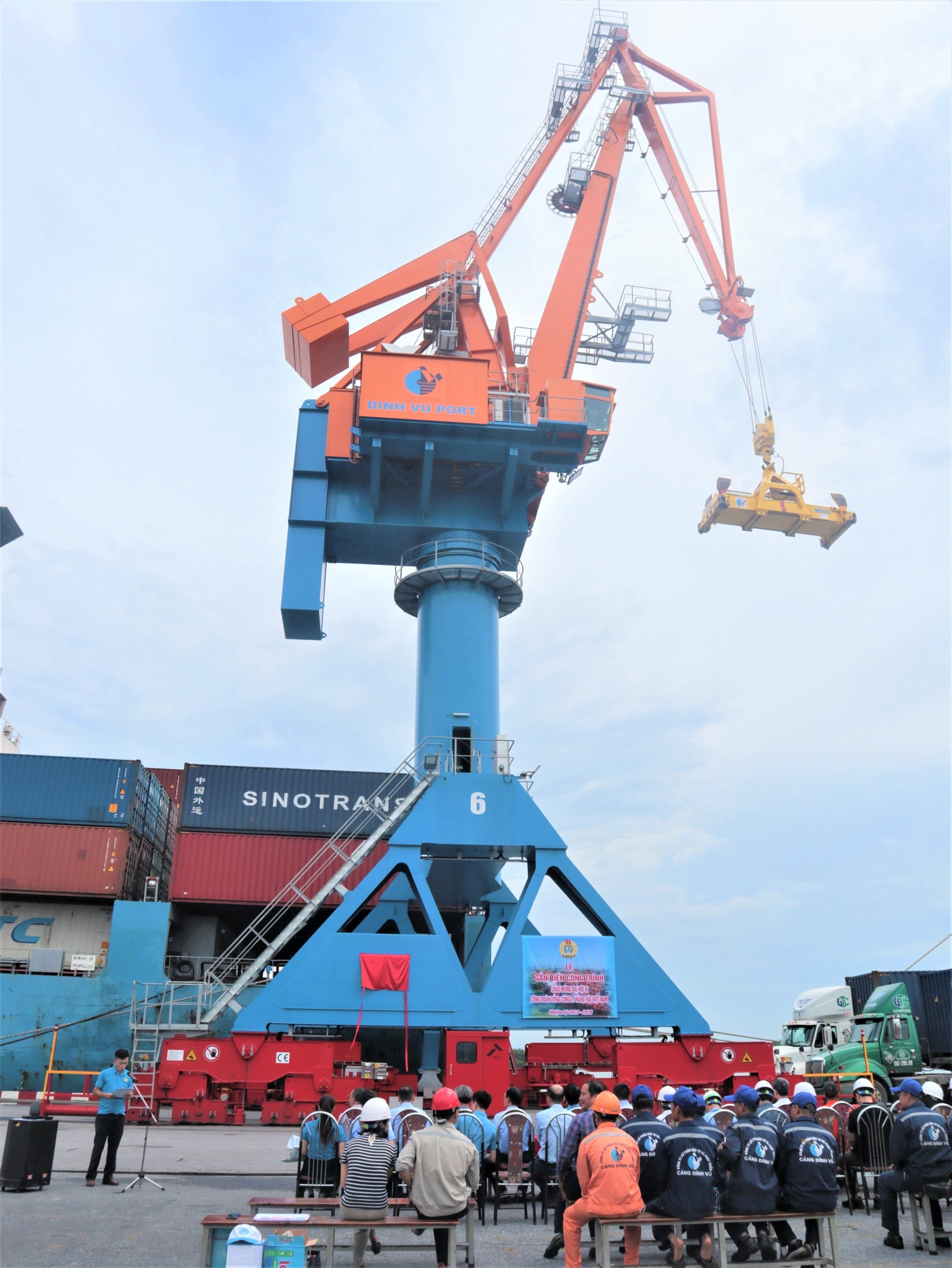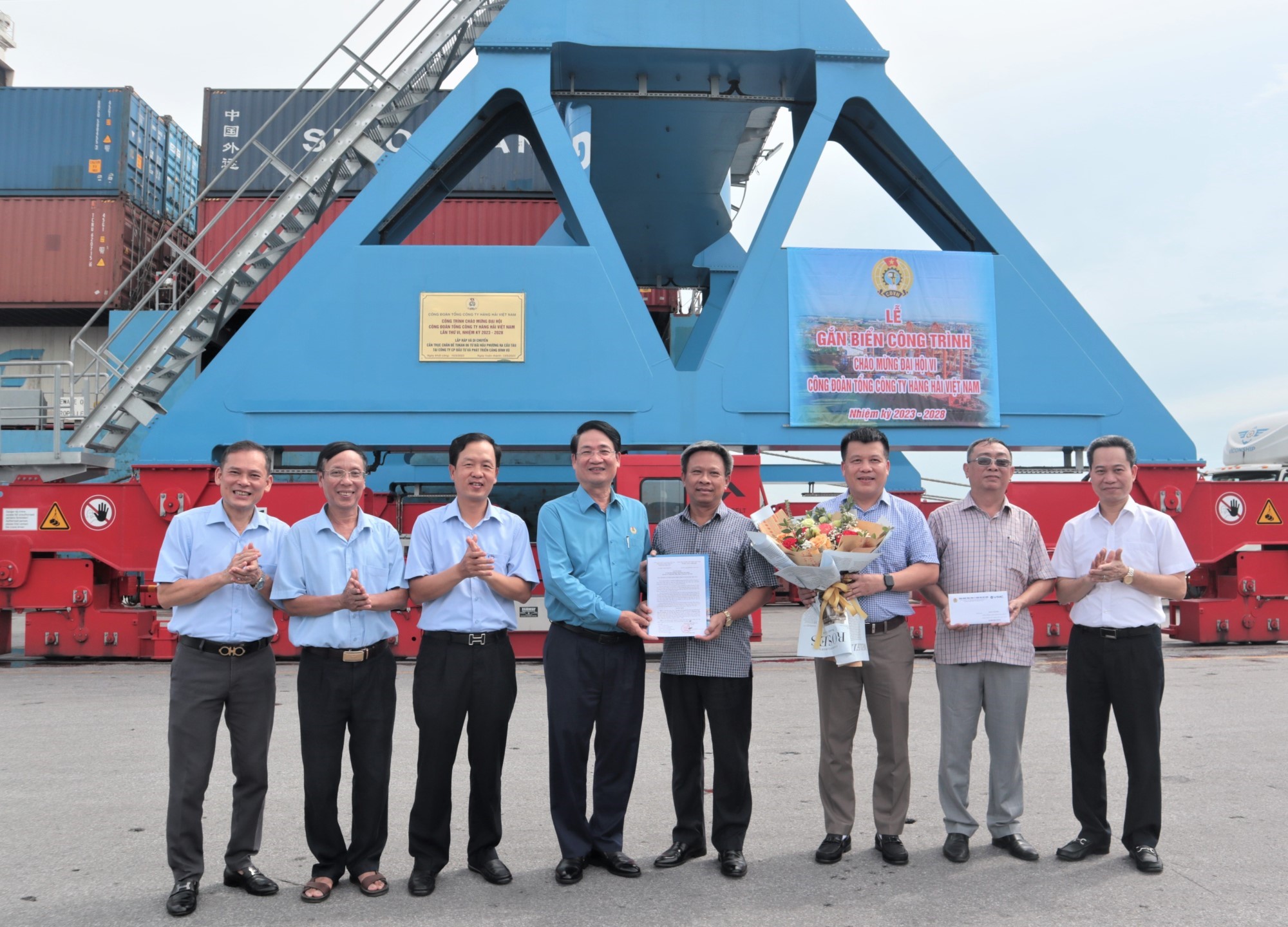 Sáng ngày 25/8/2023, tại hạ lưu cầu tàu số 1 Cảng Đình Vũ diễn ra chương trình Lễ gắn biển công trình “Lắp ráp và di chuyển cần trục chân đế Tukal từ bãi hậu phương ra cầu tàu” chào mừng Đại hội VI Công đoàn Tổng Công ty Hàng hải Việt Nam (VIMC), nhiệm kỳ 2023-2028.