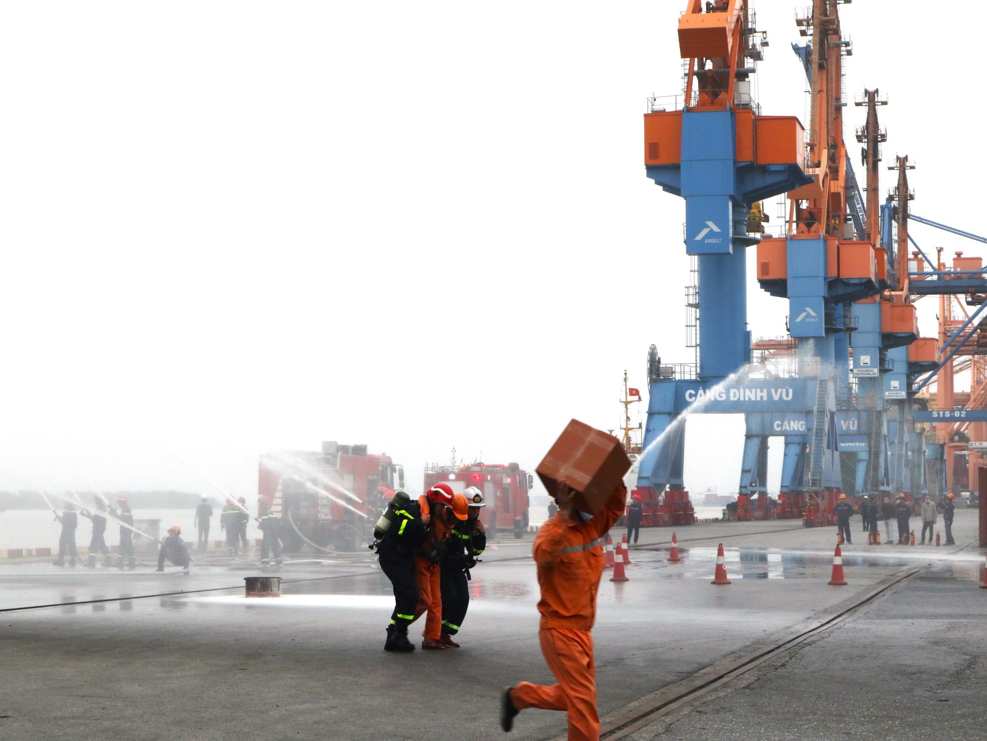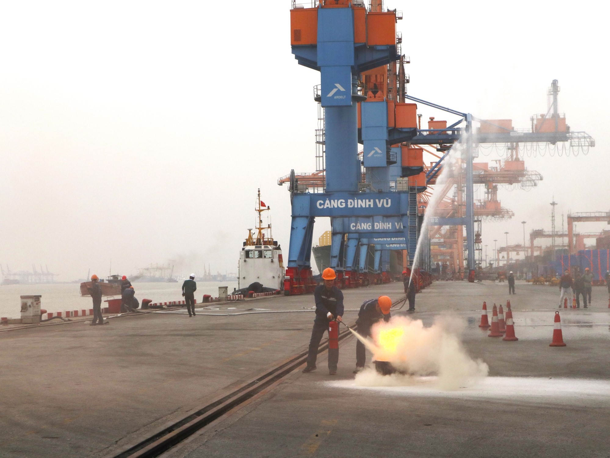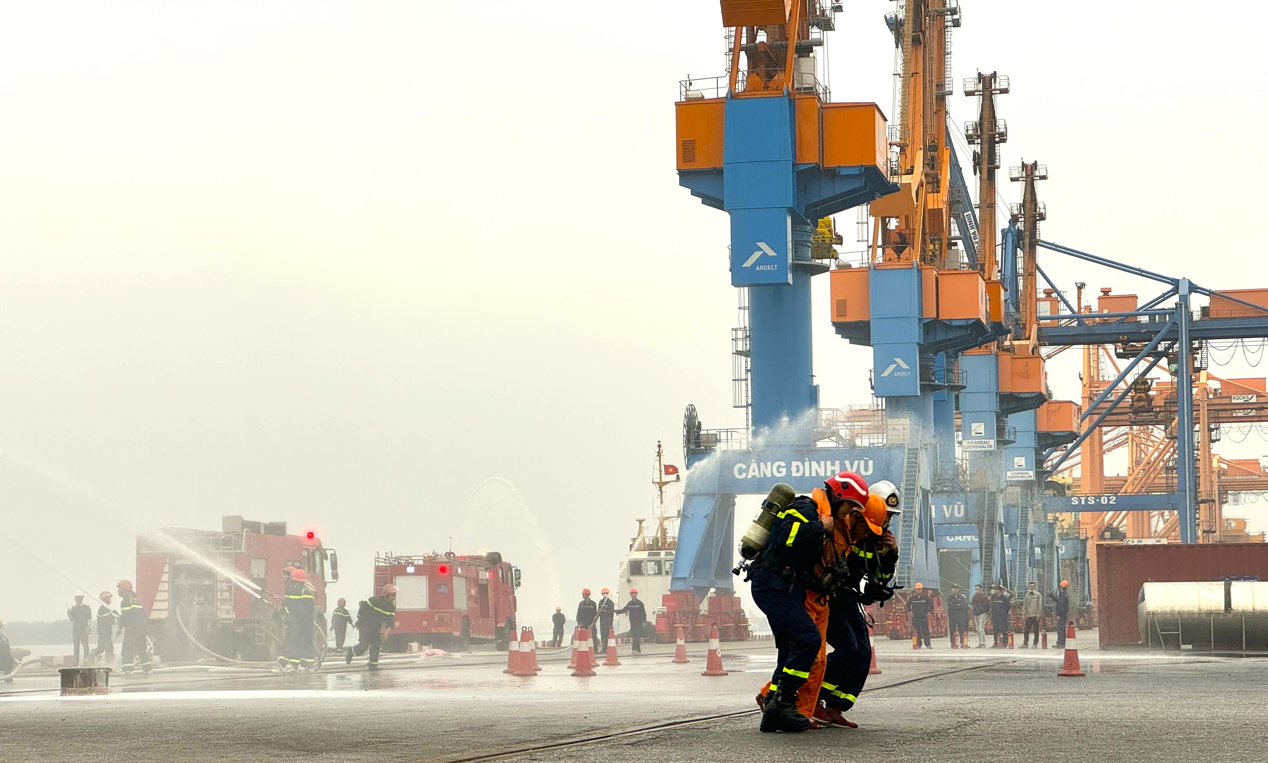 Căn cứ Kế hoạch số 3583/KHTT-PC07-Đ5, chiều ngày 04/12/2023 Công ty Cổ phần Đầu tư và Phát triển Cảng Đình Vũ phối hợp cùng Phòng Cảnh sát phòng cháy chữa cháy và cứu nạn cứu hộ (PCCC & CNCH) – Công an thành phố Hải Phòng tổ chức thực tập phương án chữa cháy và cứu nạn cứu hộ năm 2023 tại cầu tàu số 1 Cảng Đình Vũ. Trước đó, vào chiều ngày 01/12/2023, gần 200 CBCNV Cảng Đình Vũ đã được triệu tập tham gia chương trình phổ biến kiến thức về phòng cháy chữa cháy tại Hội trường Công ty.