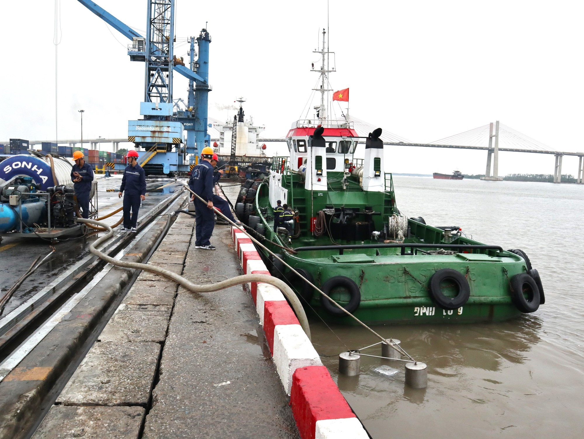 Cuối chương trình thực tập chiều ngày 04/12/2023 là nội dung diễn tập ứng phó sự cố tràn dầu với sự chỉ đạo chính của sỹ quan An ninh cảng biển Cảng Đình Vũ, cán bộ Trực ban chỉ đạo, lực lượng công nhân Bốc xếp và công nhân Tổ điện trạm Phòng Kỹ thuật. Các thành viên tham gia nội dung diễn tập ứng phó sự cố tràn dầu đã chuẩn bị đầy đủ các thiết bị, vật dụng cần thiết cũng như thực hiện nghiêm túc các quy định và thao tác đúng hướng dẫn đối với chương trình diễn tập tại doanh nghiệp.