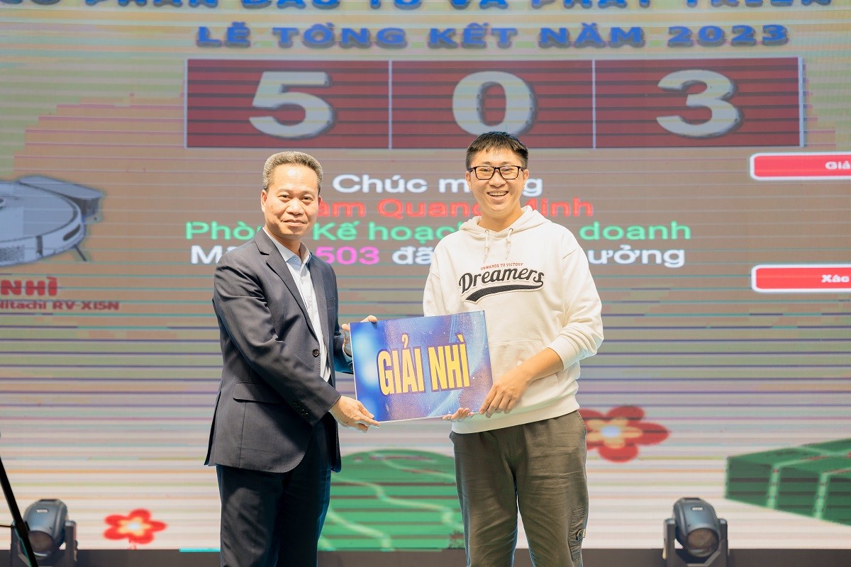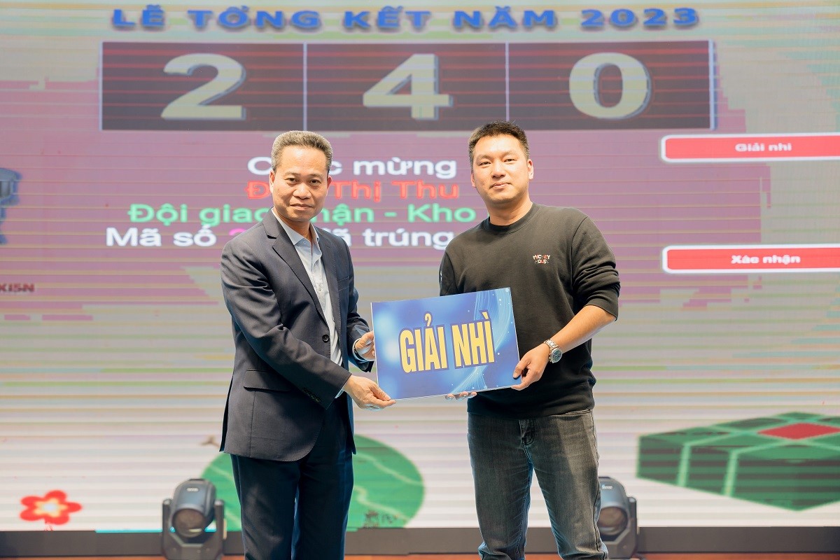 Các giải thưởng trong chương trình quay số may mắn hàng năm đều mang tính sử dụng cao và thiết thực trong đời sống hàng ngày trong đó 2 giải Nhất năm nay là máy giặt LG tích hợp tính năng sấy vô cùng tiện lợi trong mùa đông thuộc về anh Nguyễn Văn Cường – Đội Bốc xếp và anh Phùng Thế Cường – Đội Cơ giới; 01 giải Đặc biệt là máy tính bảng Ipad mini thuộc về anh Phan Văn Toán mã số 277 đến từ Đội Giao nhận kho hàng. Nụ cười và niềm vui của những cá nhân lên sân khấu nhận giải ngoài việc thể hiện may mắn của mỗi người còn minh chứng cho sự khích lệ lớn lao của ban lãnh đạo dành cho những nỗ lực và cống hiến của tập thể người lao động xuyên suốt một năm qua.
