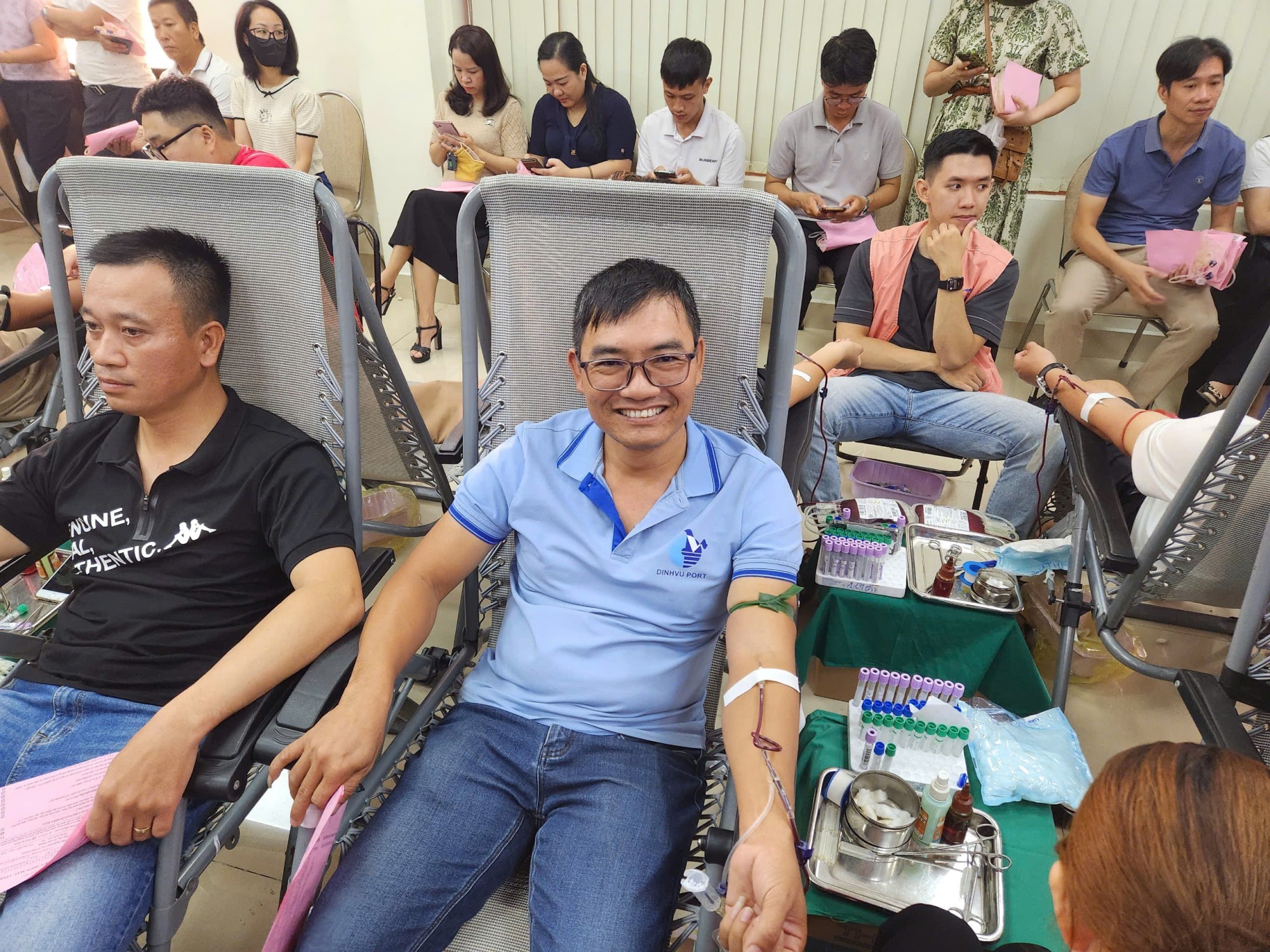 Căn cứ Kế hoạch số 3399/KH-CHP ngày 03/10/2024 của Công ty CP Cảng Hải Phòng, sau khi được và chỉ đạo và chấp thuận của Tổng giám đốc, BCH Đoàn thanh niên Cảng Đình Vũ đã vận động được 44 Cán bộ nhân viên, đoàn viên thanh niên đăng ký tham gia “Ngày hội hiến máu tình nguyện năm 2024” vào sáng ngày 15/10/2024 tại Cảng Hải Phòng.