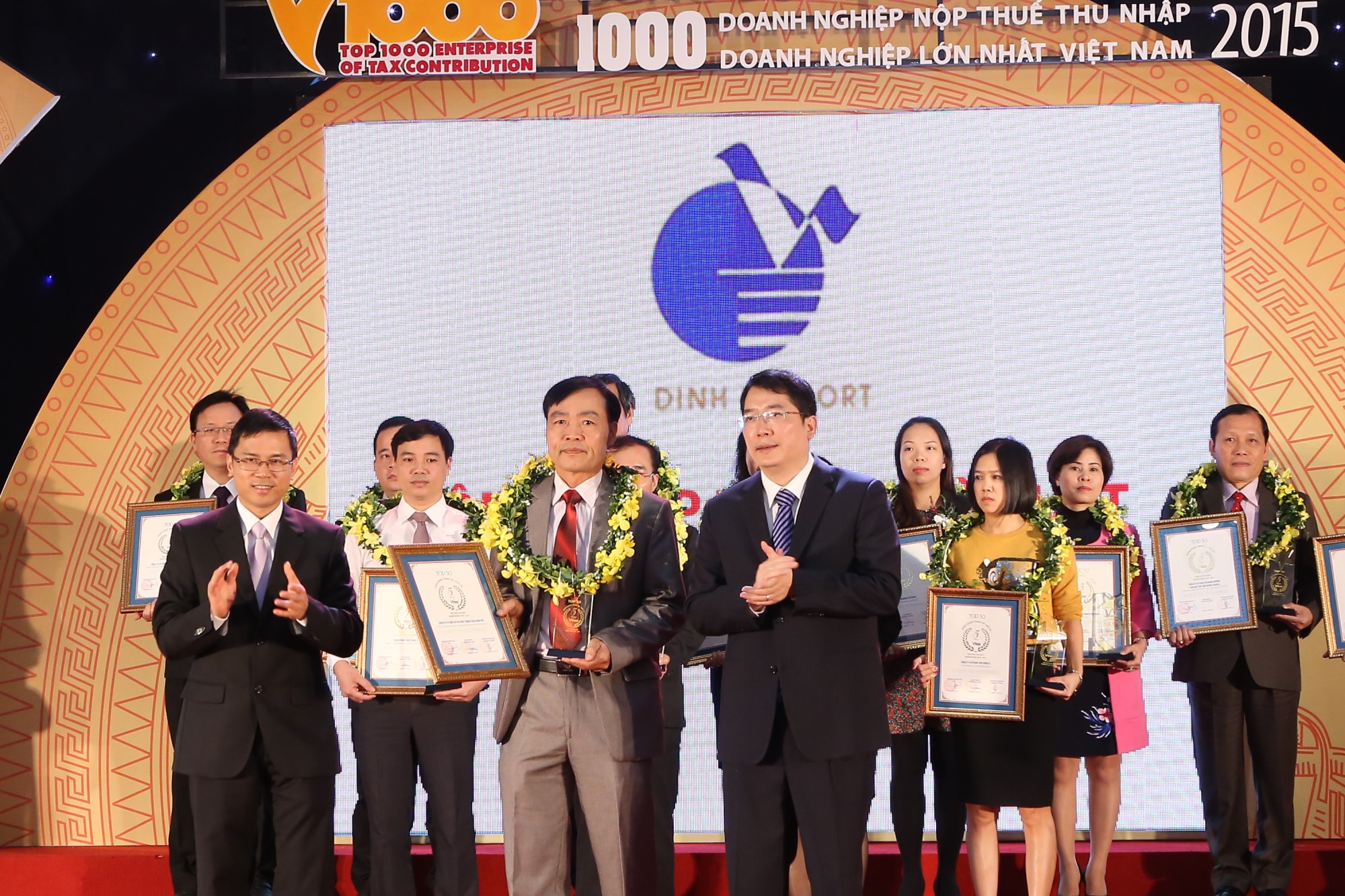 Đây là lần thứ 5 liên tiếp, Công ty Cổ phần Đầu tư và Phát triển Cảng Đình Vũ tiếp tục có mặt trong danh sách 1000 doanh nghiệp nộp thuế thu nhập doanh nghiệp lớn nhất của Việt Nam năm 2015, đông thời được vinh danh trong Top 50 Doanh nghiệp thành tựu xuất sắc nộp thuế thu nhập doanh nghiệp 2010-2015. Việc liên tiếp có mặt trong danh sách 1000 Doanh nghiệp nộp thuế lớn nhất Việt Nam là một niềm vinh dự và tự hào của toàn thể cán bộ công nhân viên Cảng Đình vũ, không chỉ đạt hiệu quả cao trong sản xuất kinh doanh, mà luôn hoàn thành tốt các nghĩa vụ đối với Nhà nước, làm tốt trách nhiệm xã hội của doanh nghiệp.