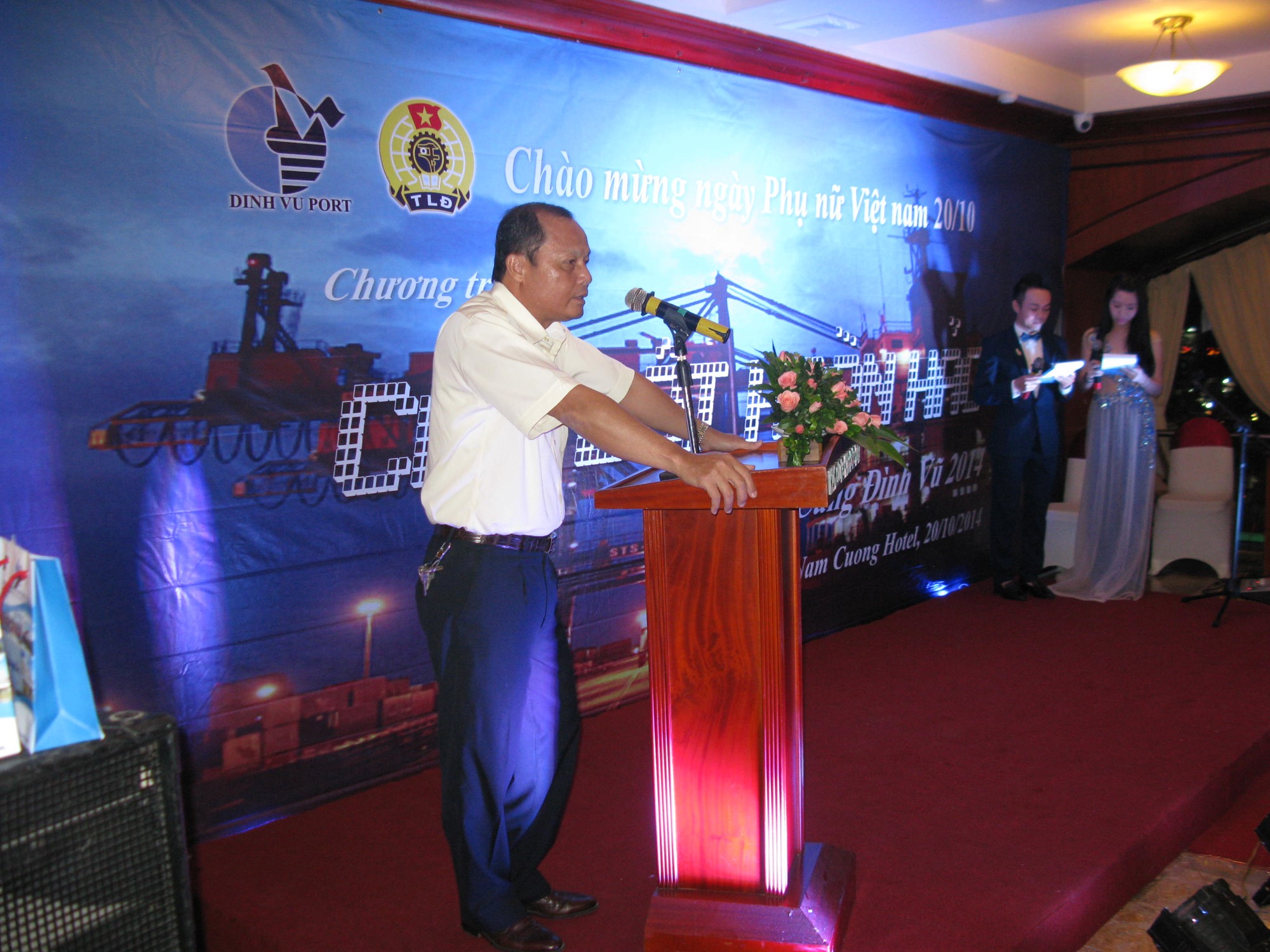 Trong buổi liên hoan đầy ý nghĩa này, Ông Nguyễn Ngọc Hồng, Bí thư Đảng ủy, Tổng Giám đốc Công ty đã những gửi lời chúc tốt đẹp nhất tới toàn thể nữ CBCNV Công ty nhân ngày Phụ nữ Việt nam 20.10, đồng thời biểu dương và ghi nhận những đóng góp của nữ CBCNV cho sự phát triển của Công ty trong thời gian qua. Tổng Giám đốc cũng khẳng định, sự chăm lo đời sống vật chất và tinh thần cho người lao động, đặc biệt là lao động nữ luôn là chính sách được ưu tiên hàng đầu của Cảng Đình vũ.