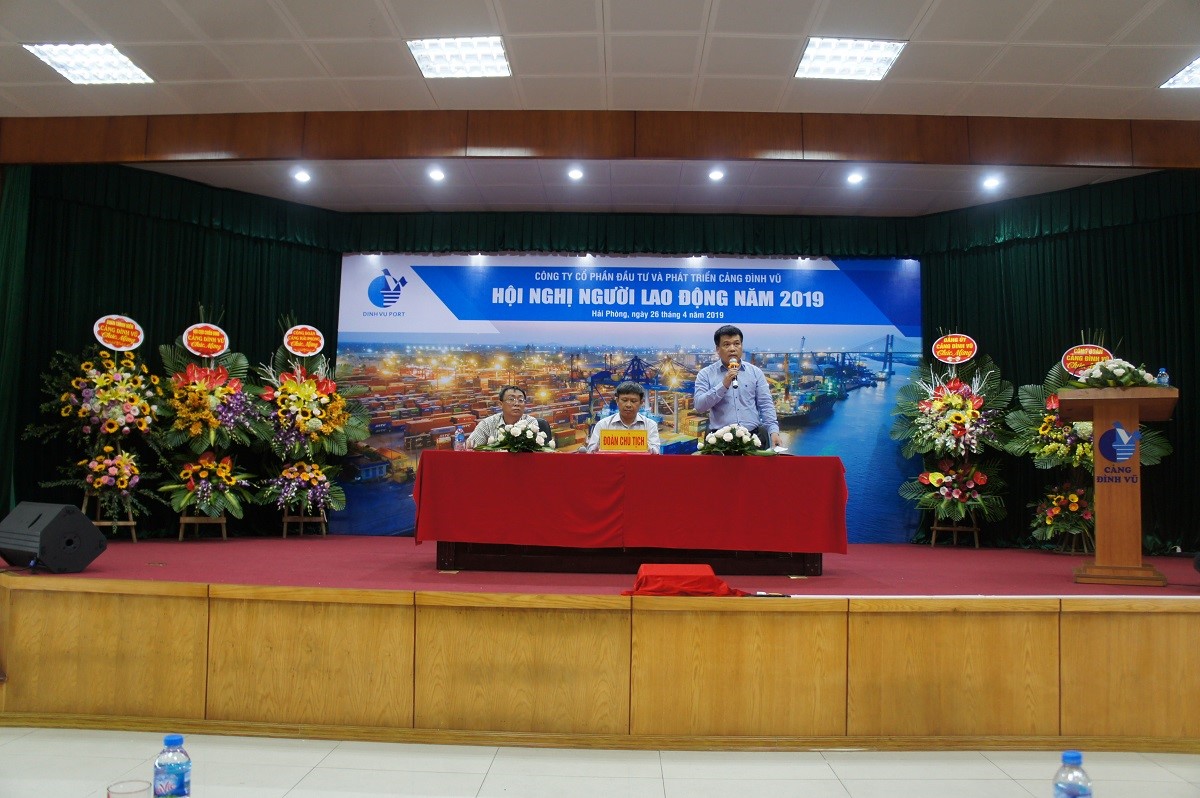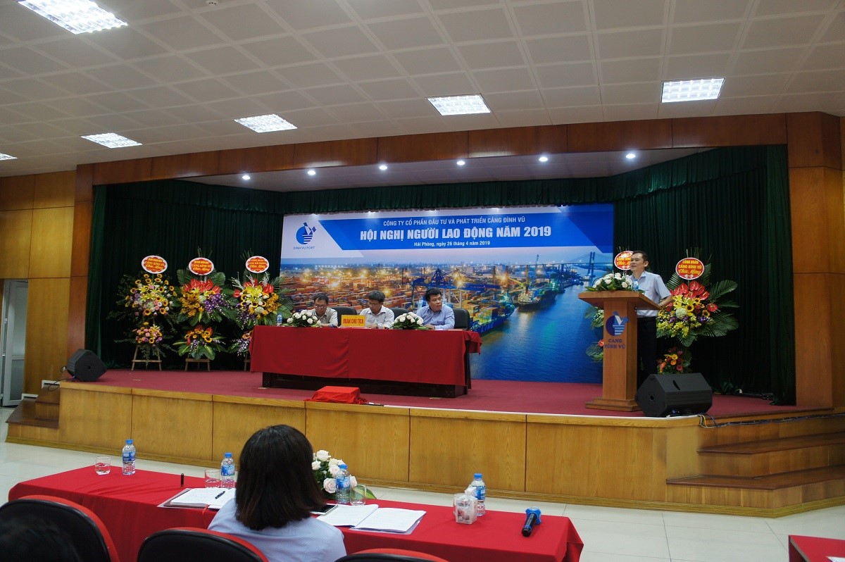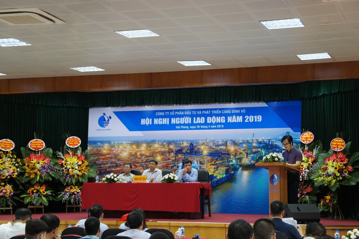 Chiều ngày 26 tháng 4 năm 2019, Công ty Cổ phần Đầu tư và Phát triển Cảng Đình Vũ đã tổ chức Hội nghị người lao động năm 2019 tại Hội trường tầng 5 Công ty, phường Đông Hải 2, quận Hải An, thành phố Hải Phòng. Tham dự Hội nghị có tổng số 125 đại biểu đại diện cho toàn thể CBCNV các đơn vị phòng, ban, tổ, đội trong Công ty.