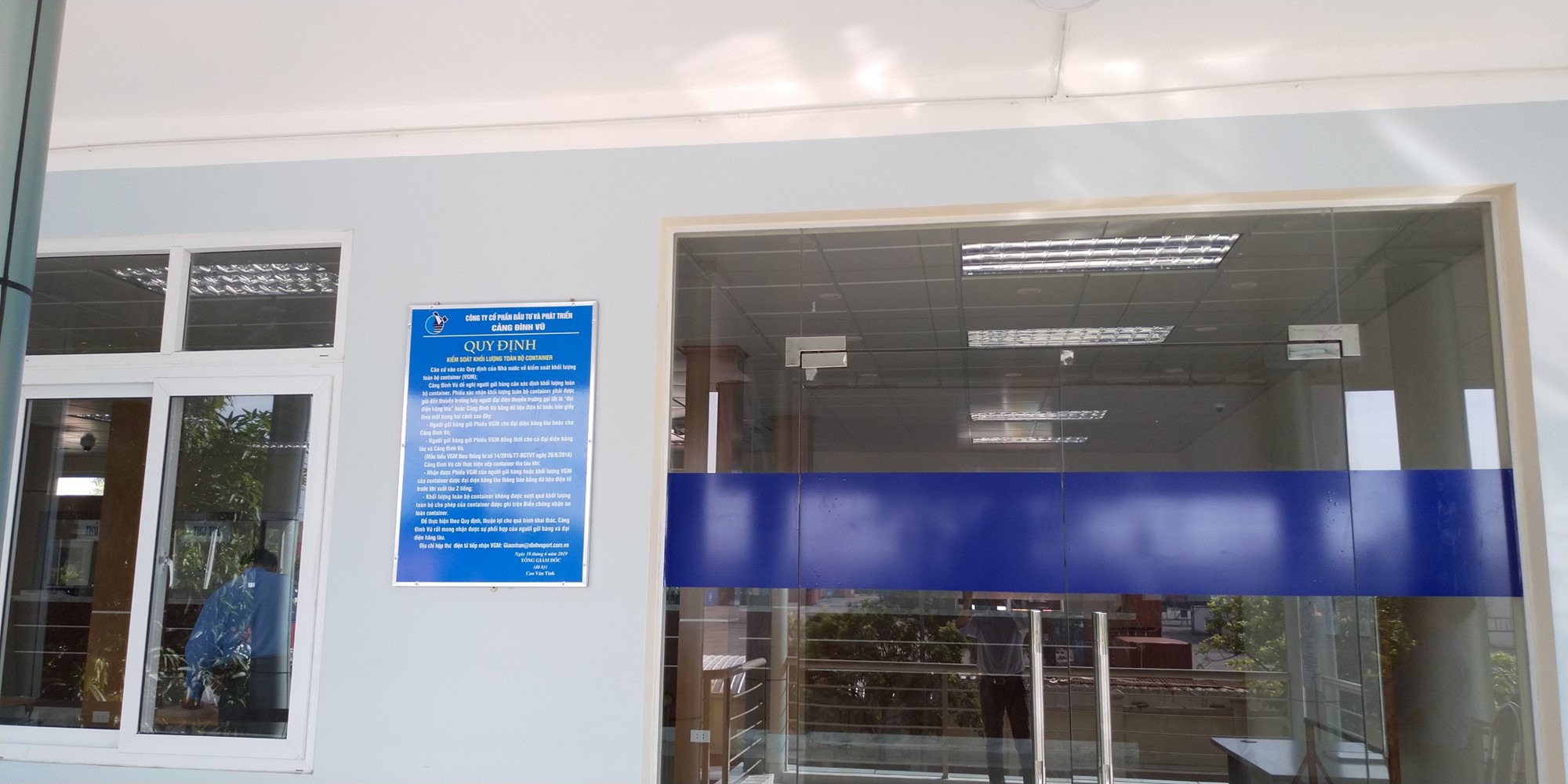 Ngày 28/7/2019 Cảng Đình Vũ chuyển nơi đăng ký các dịch vụ và thủ tục hàng hóa từ khu văn phòng 5 tầng sang khu văn phòng 2 tầng.