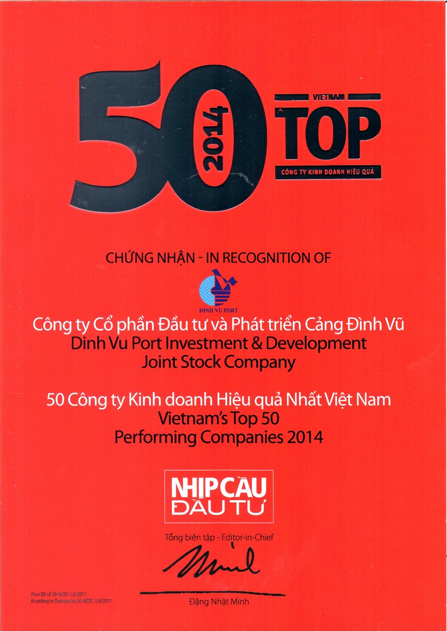 Cảng Đình vũ tiếp tục lọp trong Top 50 Doanh nghiệp kinh doanh hiệu quả nhất Việt nam