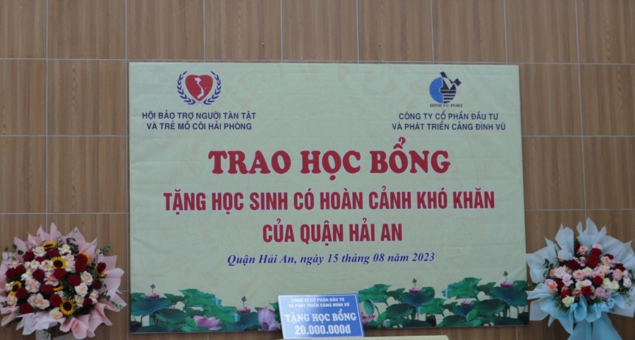 Cảng Đình Vũ trao tặng 20 suất học bổng cho trẻ em khuyết tật và có hoàn cảnh khó khăn Quận Hải An
