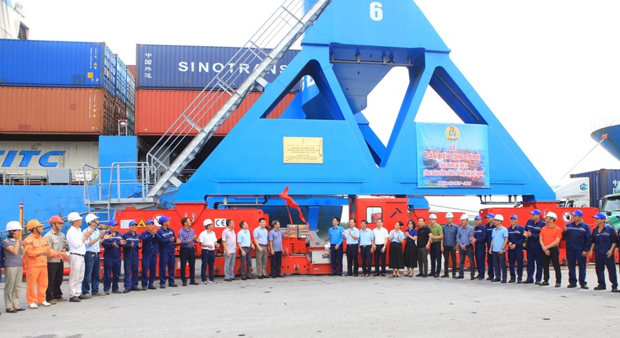 Sáng ngày 25/8/2023, tại hạ lưu cầu tàu số 1 Cảng Đình Vũ diễn ra chương trình Lễ gắn biển công trình “Lắp ráp và di chuyển cần trục chân đế Tukal từ bãi hậu phương ra cầu tàu” chào mừng Đại hội VI Công đoàn Tổng Công ty Hàng hải Việt Nam (VIMC), nhiệm kỳ 2023-2028.