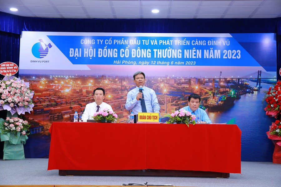 Sáng ngày 12/6/2023, Công ty Cổ phần Đầu tư và Phát triển Cảng Đình Vũ đã tổ chức họp Đại hội đồng cổ đông thường niên năm 2023 tại Hội trường tầng 5 Công ty, phường Đông Hải 2, quận Hải An, thành phố Hải Phòng. Chương trình có sự tham gia dự họp của 210 cổ đông hiện hữu theo danh sách chốt quyền tham dự ngày 05/5/2023.
